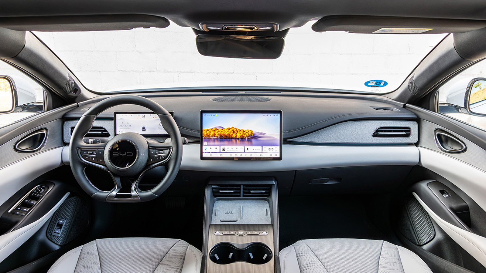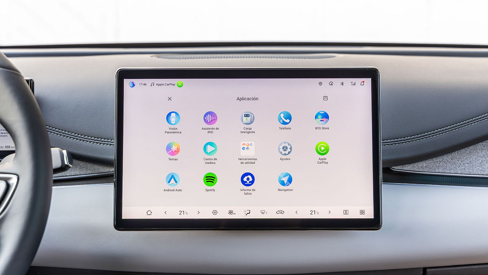 El interior es de calidad pero aquí su monitor, no gira. BYD.