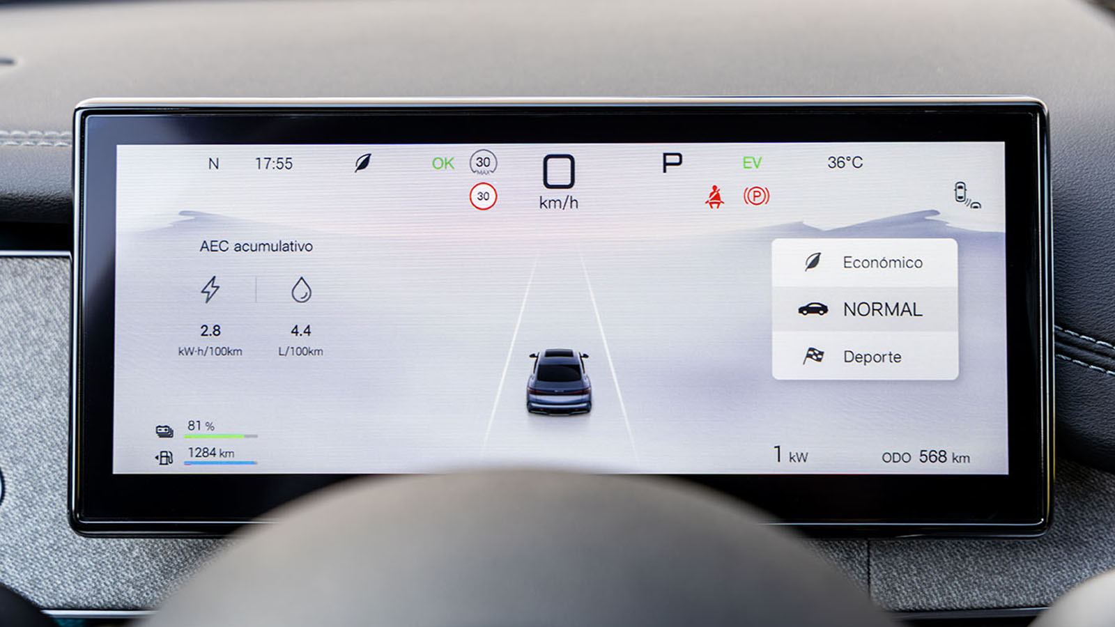 El freno, lejos de los esquemas convencionales de los PHEV, ofrece mordiente firme y el tarado dinámico está claramente optimizado. La gestión electrónica de la asistencia al frenado, que ahora se opera desde la pantalla, podría mejorarse en usabilidad. Pero lo más característico y representativo de este coche es la cifra de autonomía que ofrece, de hasta 1.505 km en el caso del sedán y de casi 1.400 km en el Touring, aunque esperaremos para tenerlo en nuestras manos para ver si es realidad o no.