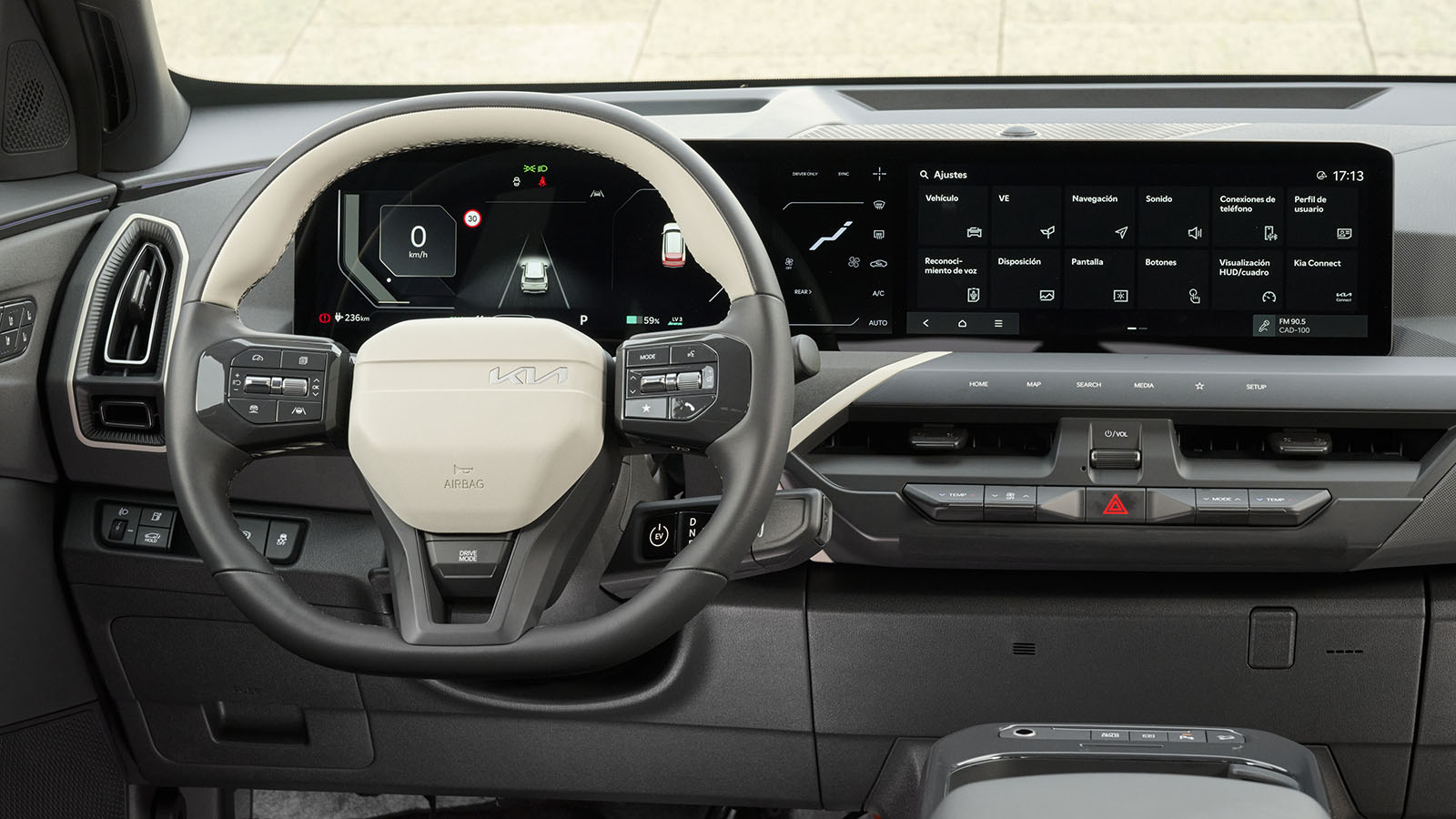 En un eléctrico como este, la experiencia de conducción se juega también en la frenada regenerativa. El KIA EV5 incorpora el sistema i-Pedal 3.0, con distintos niveles de retención y posibilidad de circular prácticamente con un solo pedal. No es una novedad absoluta en el mercado, pero sí es una herramienta muy útil cuando está bien calibrada, porque cambia la forma de relacionarse con el coche, sobre todo en tráfico urbano y periurbano. KIA pone el foco precisamente en esa suavidad e intuición de uso.