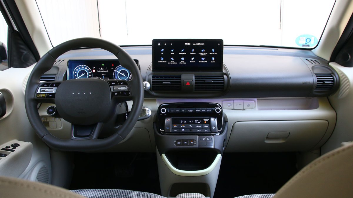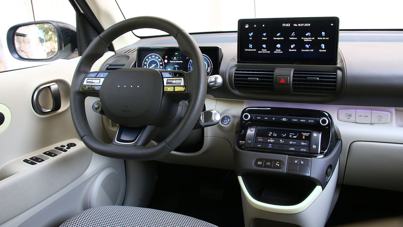 El Inster 2025 destaca no solo por su calidad de rodadura, sino también por su aplomo, estabilidad y precisión en la dirección, cualidades que acompaña de un tamaño exiguo con el que es sencillísimo moverse por ciudad. Igualmente no solo propone tres modos de conducción, Eco, Normal y Sport, sino también cuatro niveles de regeneración de la frenada, incluyendo el i-Pedal para realizar una conducción de un solo pedal.