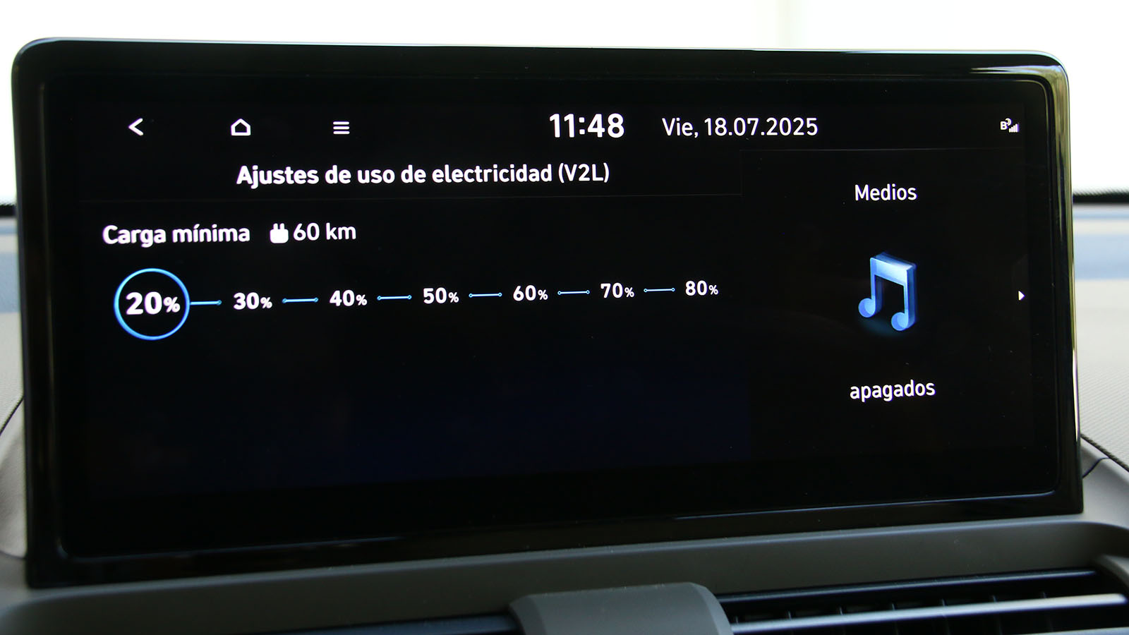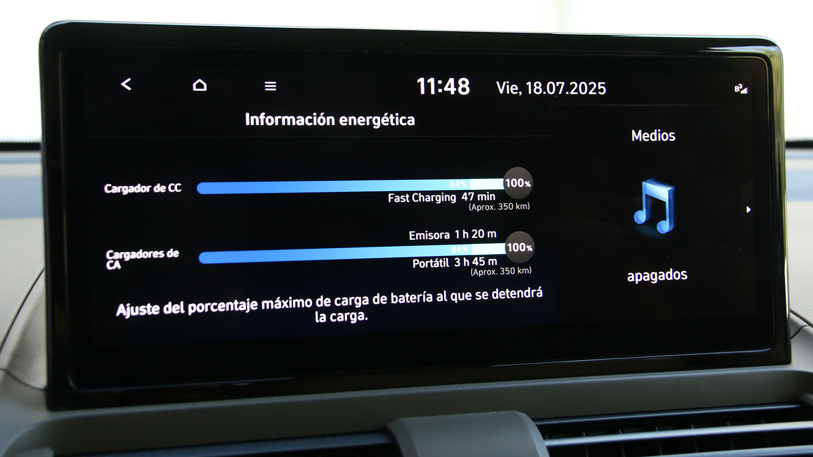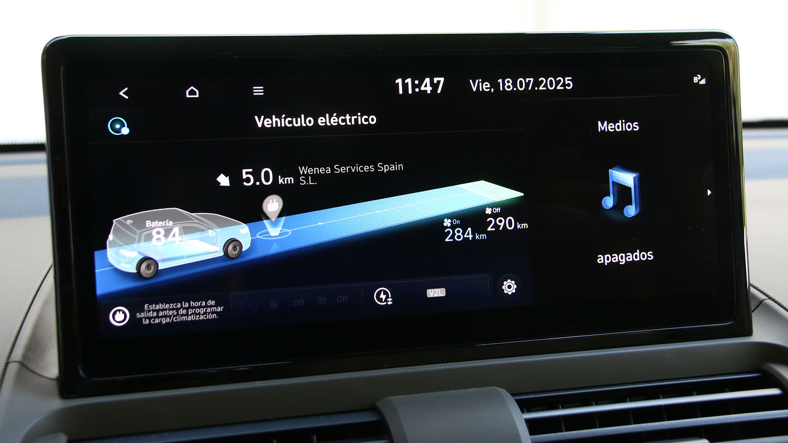 Hyundai dice que con nuestra configuración daría para cubrir 360 km y más de 470 en urbano. Como te decimos nosotros le hemos sacado más de 300 sin despeinarse y puede rozar los 330 km incluso alternando carretera. Además, una de las ventajas de la versión tope de gama es que puede cargar a más potencia, 100 kW, lo que se traduce en el paso del 10 al 80% en tan solo 30 minutos, pudiendo e incluso recuperar 100 km en tan solo 12 minutos. A todo ello se suma además la función de carga bidireccional para dar energía a otros dispositivos resultando muy útil en camping por ejemplo.