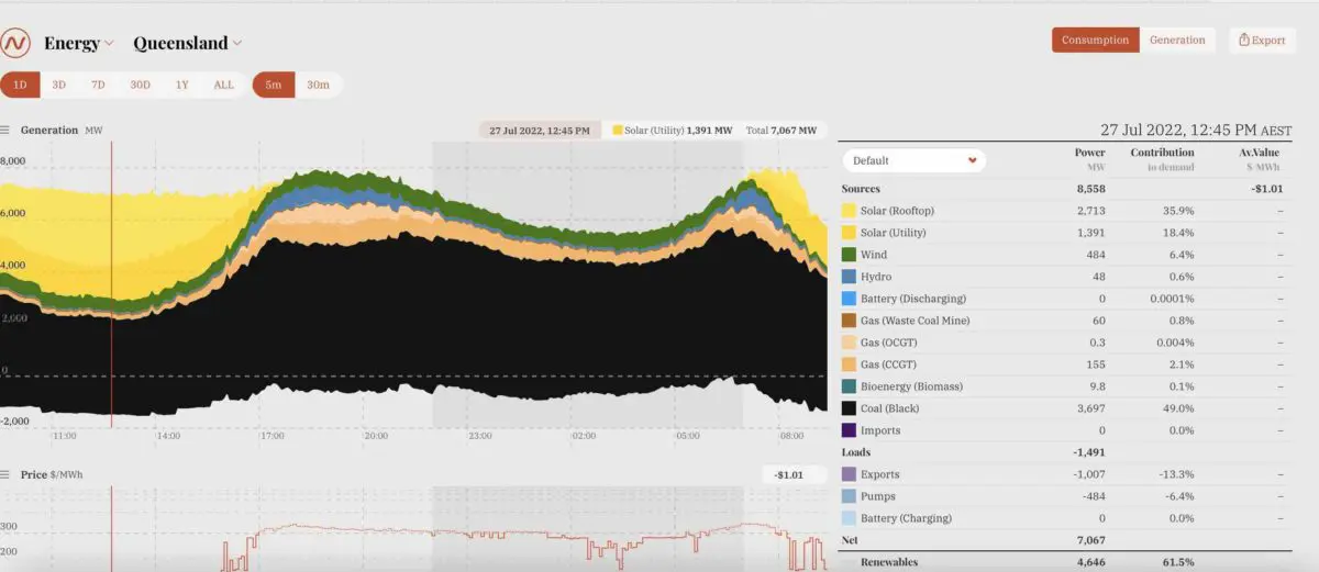 Queensland tiene un objetivo de energía renovable del 50% para 2050, lo que no parece ambicioso pero ahora lo parece porque sigue siendo el estado más dependiente del carbón del país y durante los últimos 12 meses promedió poco más del 20% de energías renovables, el más bajo en el país.