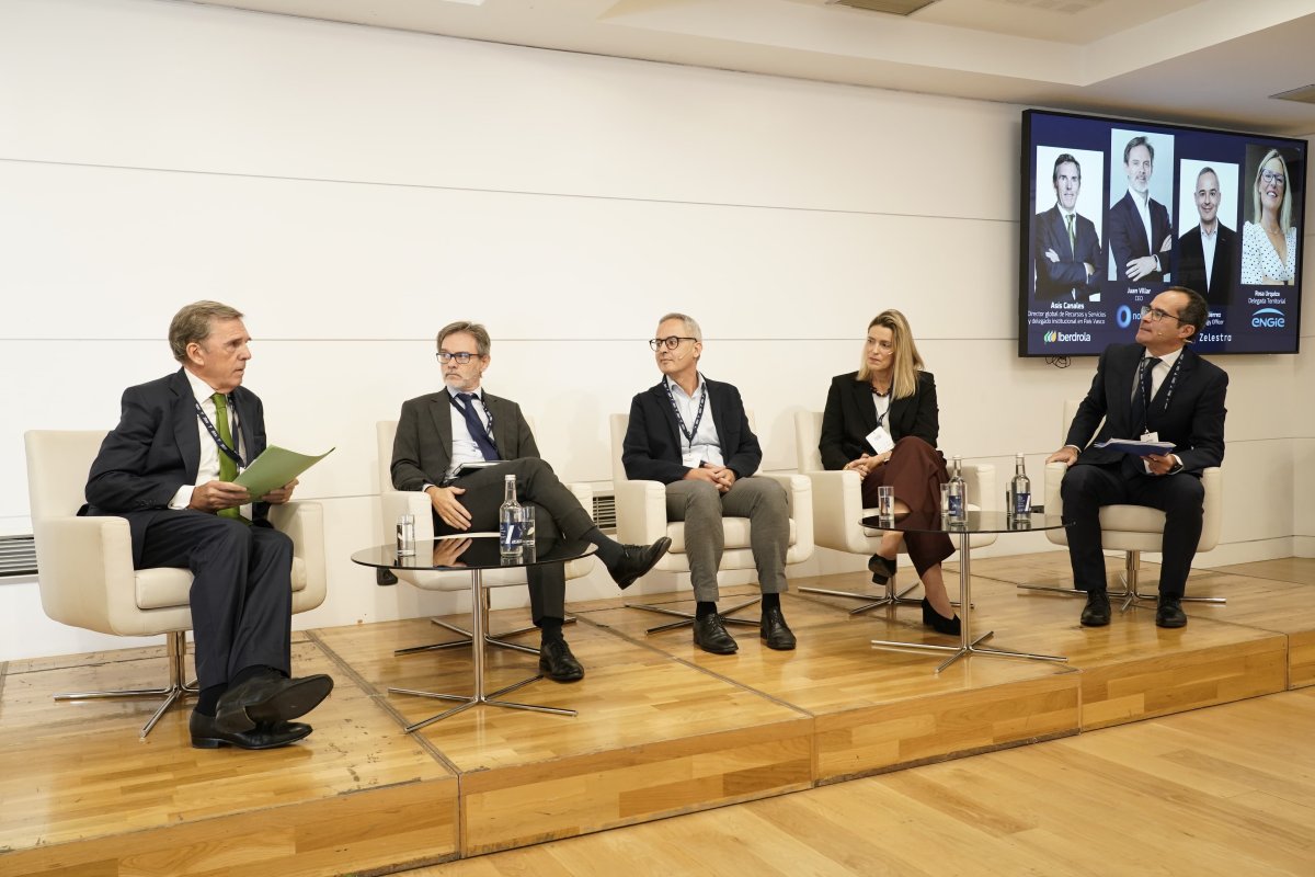 De izquierda a derecha: Asís Canales (Iberdrola), Juan Villar (Nortegas), Mikel Gutiérrez (Zelestra), Rosa Urquiza (Engie) y el moderador Jorge Fernández (Orkestra).FOTO: Fernando Gómez