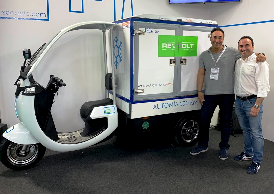 La start-up española Revoolt, especializada en las entregas de última milla para el sector de la alimentación, ha presentado el acuerdo con Scoobic en la pasada feria eDelivery 2019 que le convierte en la primera empresa logística española en incorporar a su flota el nuevo modelo Scoobic Light con cajón de frio, posicionándose así como un referente en las soluciones de transporte sostenible de última generación.
