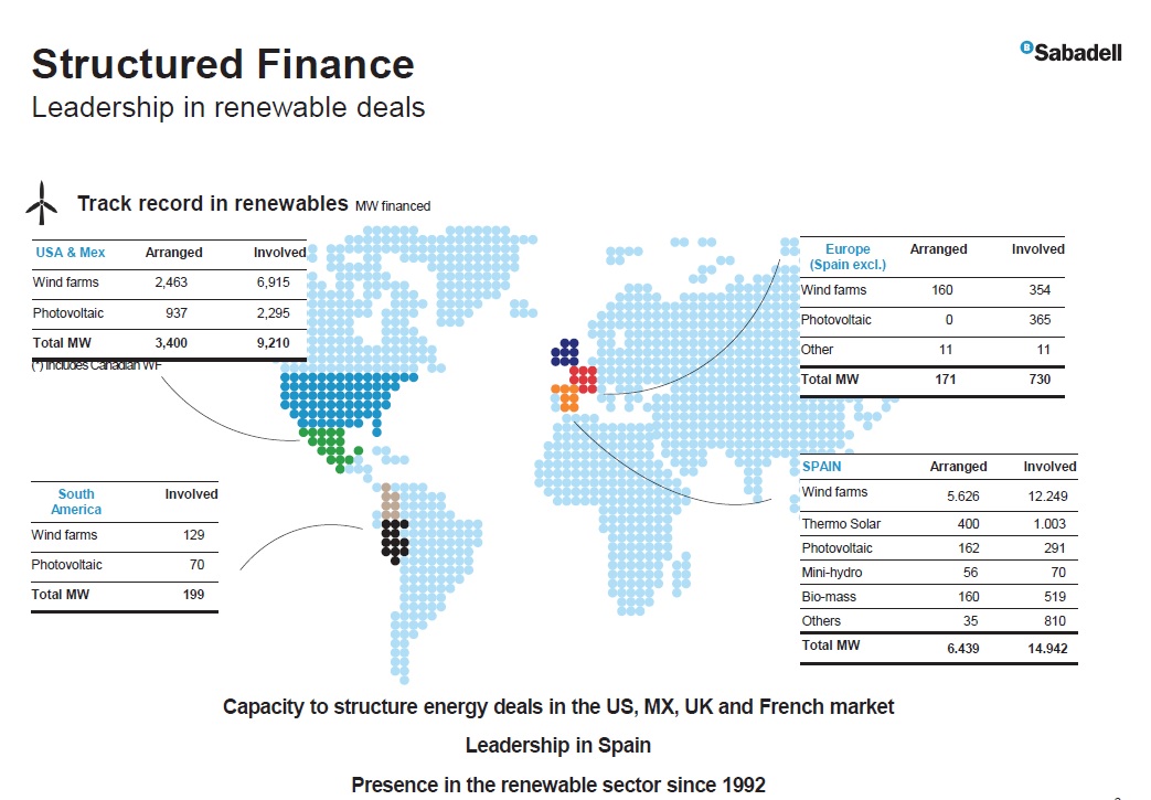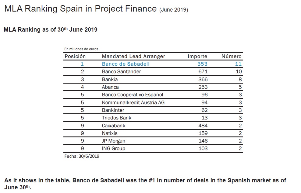 Y en lo que va de 2019, el Sabadell es el banco con más proyectos financiados, por delante de las grandes entidades. Ha participado en 25 operaciones, ha financiado más de 1.500 MW y prestado más de 1.000 millones.
