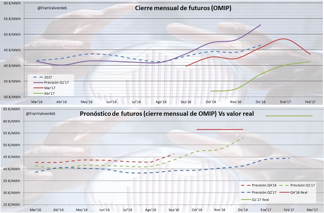La previsión para este Q1 se cerró en Diciembre en 53 €/MWh pero seguramente termine algo más arriba, sobre los 54,7-55 €/MWh
