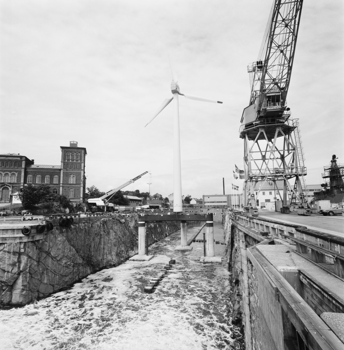 Trabajos con el aerogenerador durante su instalación.DigitaltMuseum. CC BY 4.0.