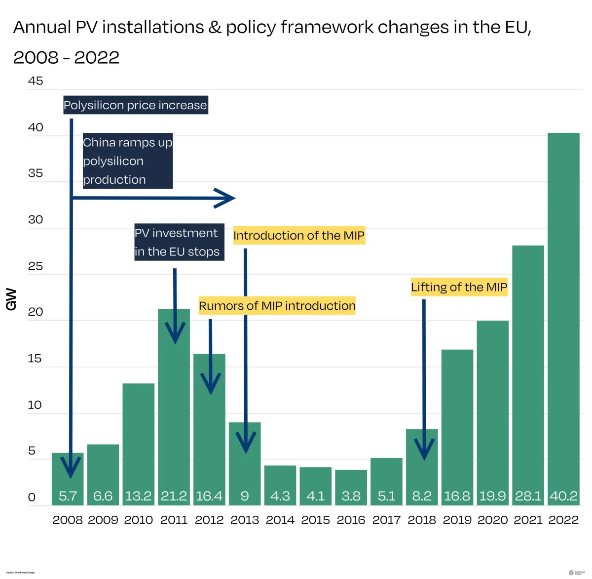 Las medidas comerciales no han funcionado en el pasado. El sector advierte del colapso solar en la década de 2010. Hace sólo 5 años se suprimieron por una buena razón los derechos antidumping y compensatorios vigentes sobre los paneles solares importados de China, Taiwán y Malasia. Estos derechos tuvieron consecuencias negativas, que nos enseñaron una dolorosa lección. El empleo en el sector solar, la inversión en proyectos y el despliegue de la energía solar se redujeron drásticamente durante el periodo de aplicación de estas medidas de defensa comercial y provocaron un aumento de los costes para nuestros clientes y consumidores, sin que se recuperaran las fábricas solares europeas.