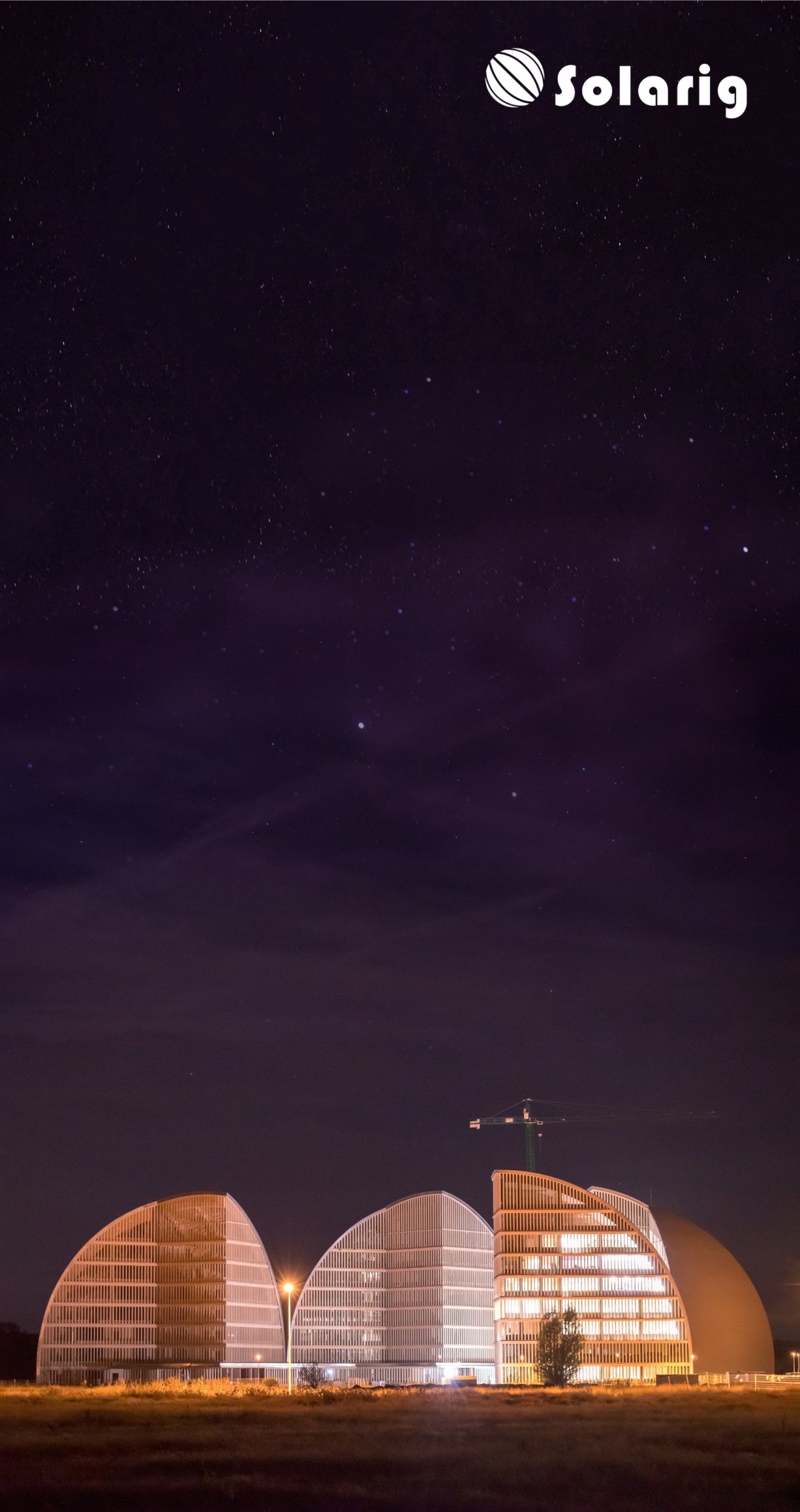 Magnífica foto de la nueva sede de Solarig en Soria en un cielo estrellado.1
