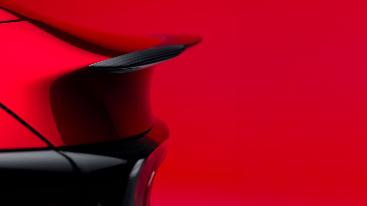 Detalle del alerón trasero en fibra de carbono. Tesla