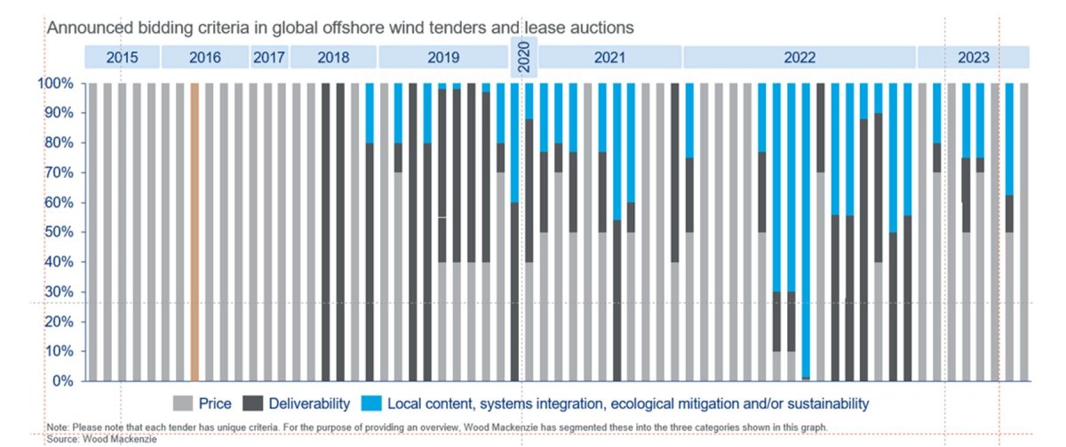 Anteriormente, el mercado veía principalmente la viabilidad económica, el grado en que las ventajas económicas de algo por hacer o lograr son mayores que los costos económicos, como una forma de reducir el costo nivelado de la energía ( LCOE). Sin embargo, impulsado por las licitaciones y subastas de energía eólica marina que batieron récords, los elementos más amplios de las "ventajas económicas" ahora están recibiendo más atención, ya que los formuladores de políticas buscan en la energía eólica marina algo más que energía verde.