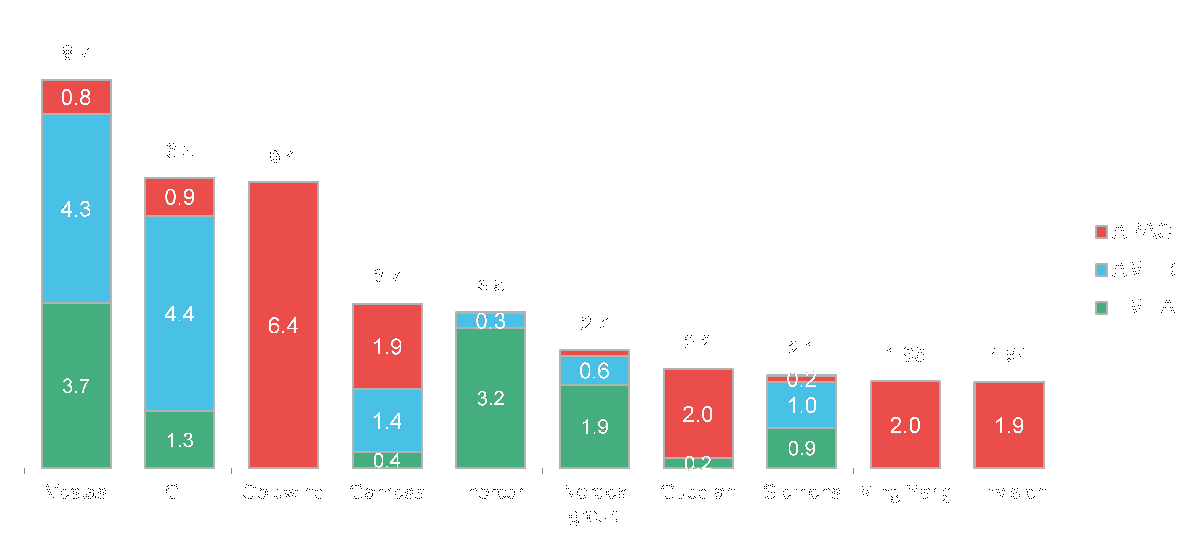 En cuanto a offshore ha destacado sobre todo la china Sewind que ha logrado construir 482 MW. El resto de fabricantes no alcanzan los 60 MW, la mayoría chinos, aunque General Electric se ha colado con 30 MW este año.