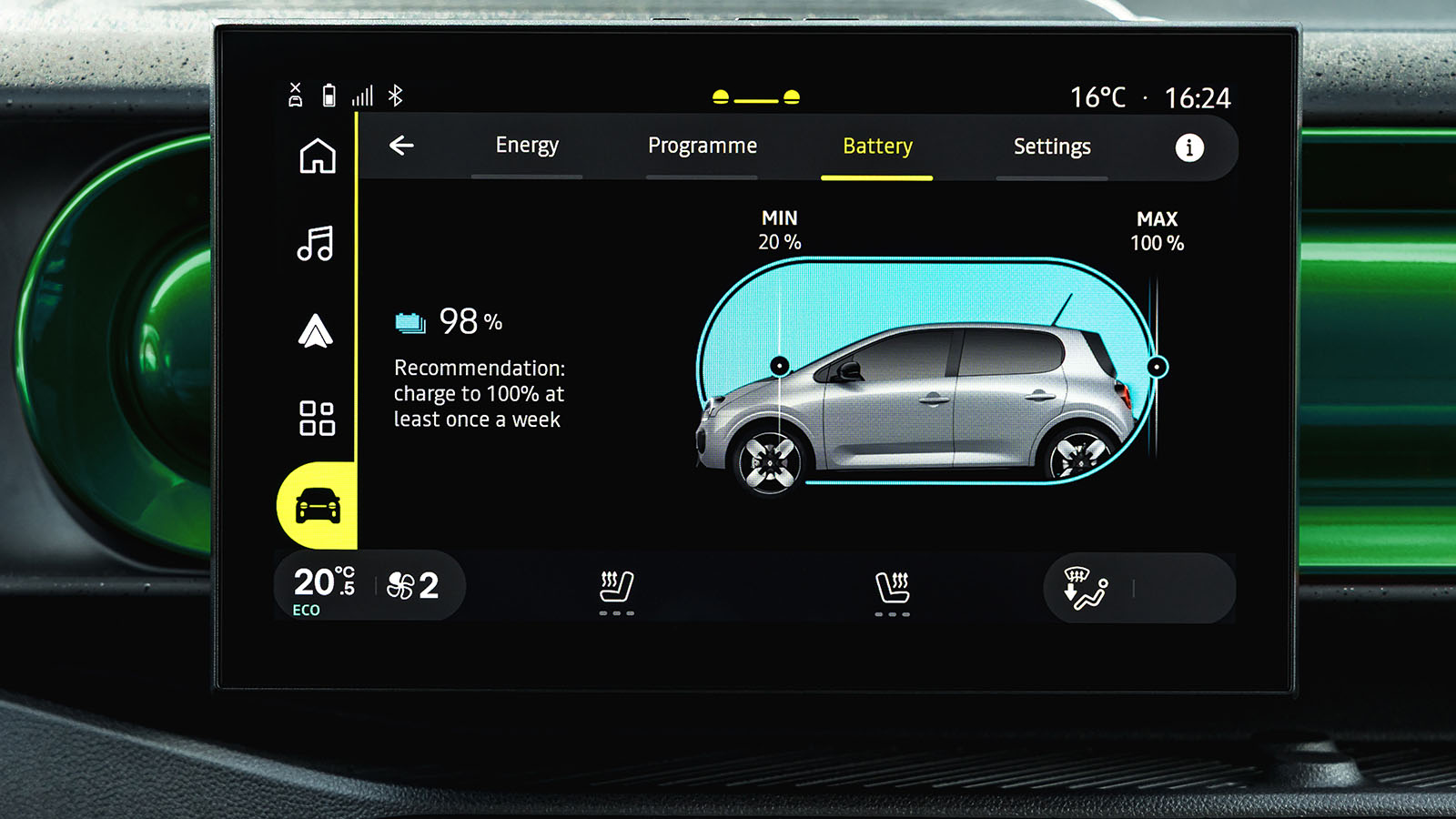 Al igual que el Twingo ‘noventero’ descongestionó las ciudades, el Twingo E-TECH actual busca descarbonizarlas con su sistema 100% eléctrico dotado de un motor de 82 CV con 175 Nm de par, más que suficiente para el discurrir diario, que se alimenta de la energía almacenada en una batería de litio-hierro-fosfato (LFP) de 27,5 kWh con tecnología cell-to-pack, que optimiza el espacio y reduce el coste en un 20%, manteniendo una autonomía real de hasta 263 kilómetros según ciclo WLTP.