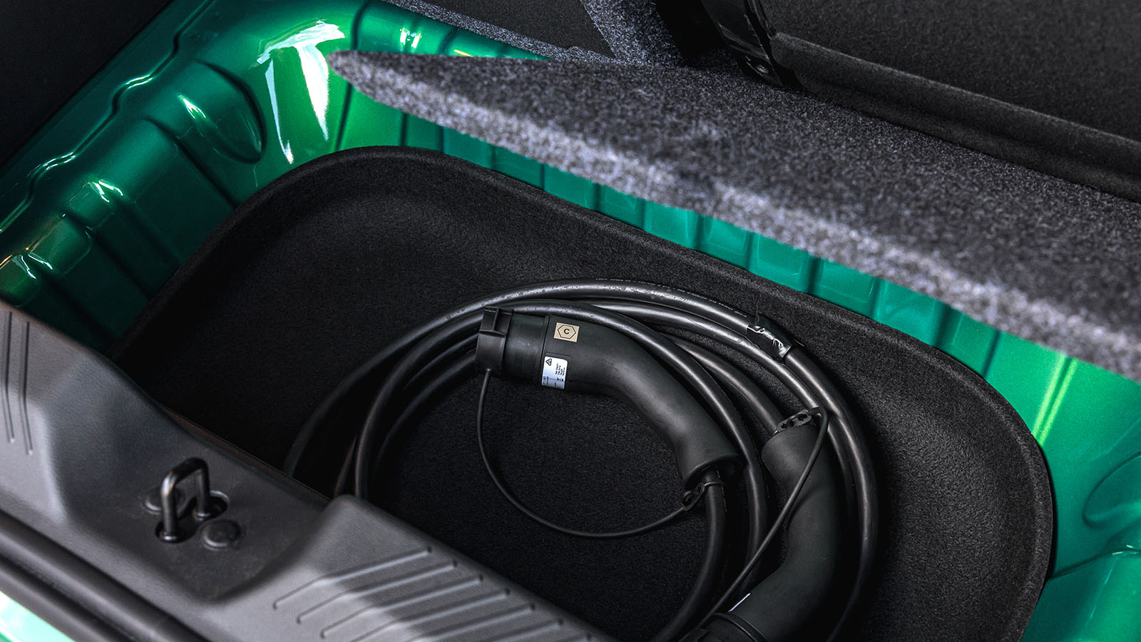 En el puesto de conducción también hay repartidos otros 19 litros para depositar todos nuestros enseres personales, destacando incluso la maleta situada entre los asientos que hace las veces de apoyabrazos central y que sirve para guardar más cables de carga.