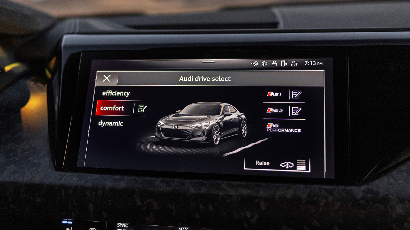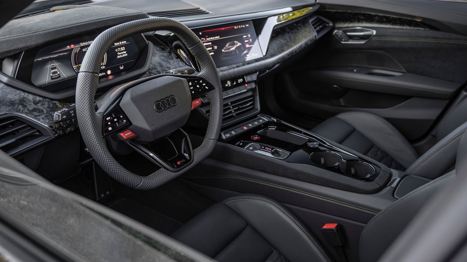 Un rendimiento que no es escaso ya que el motor trasero es totalmente nuevo (más ligero y con mucha más pegada) entregando ahora 556 CV, con un salto bestial frente al modelo anterior. Si sumamos toda la artillería eléctrica y activamos el launch control, el coche alcanza la friolera de 925 CV, lo que lo coloca entre los referentes absolutos del mercado eléctrico y lo sitúa muy cerca de los Porsche Taycan Turbo y Turbo S en cifras puras, pero siempre con su propio sello Audi.