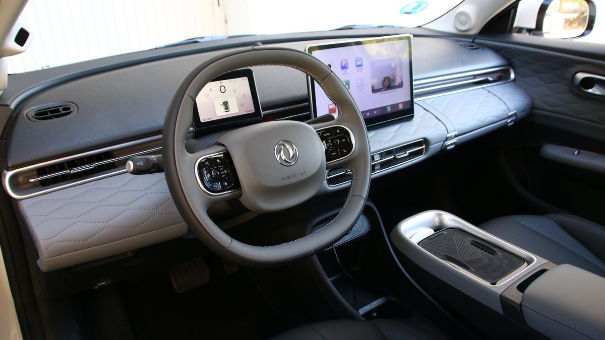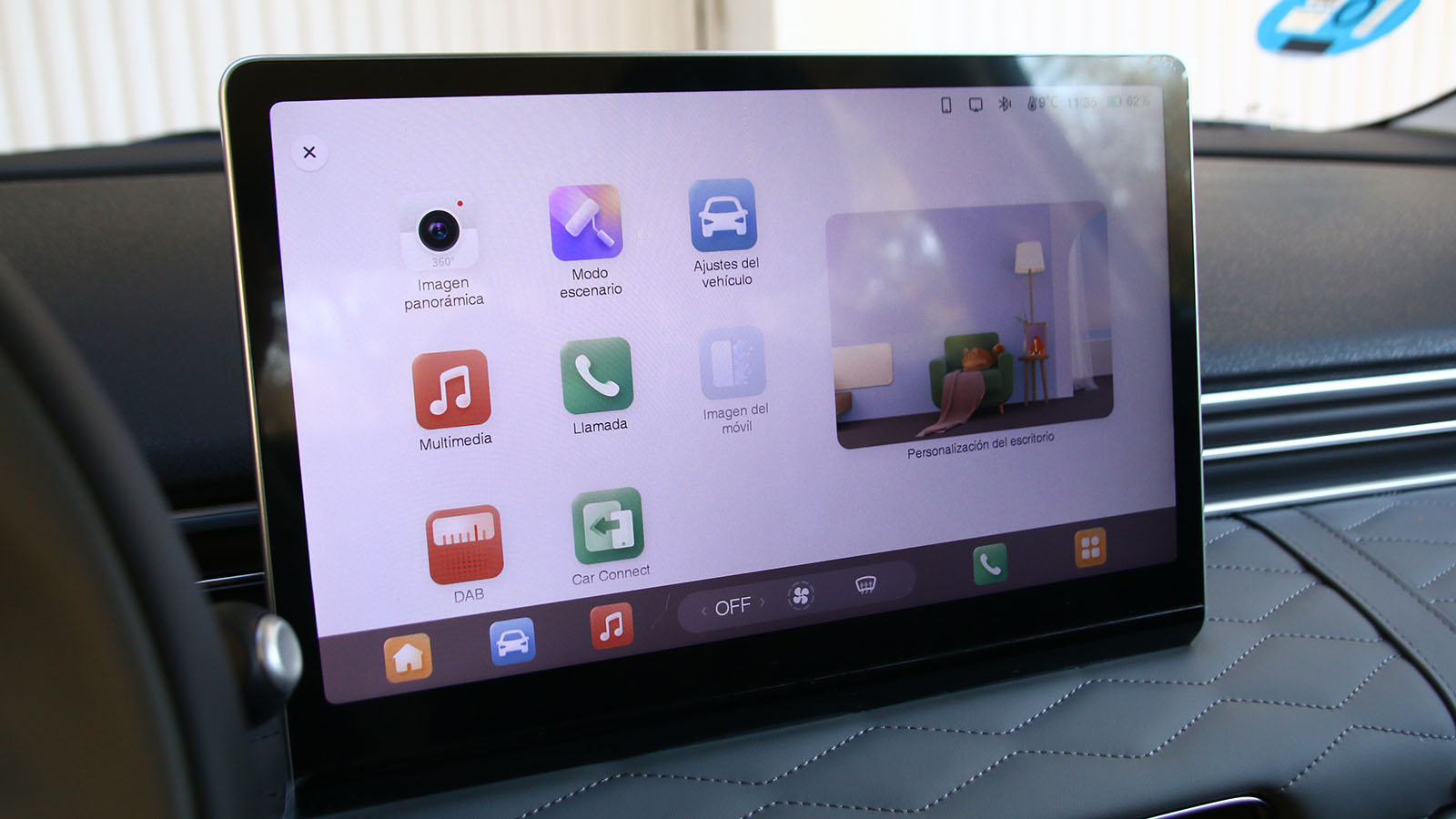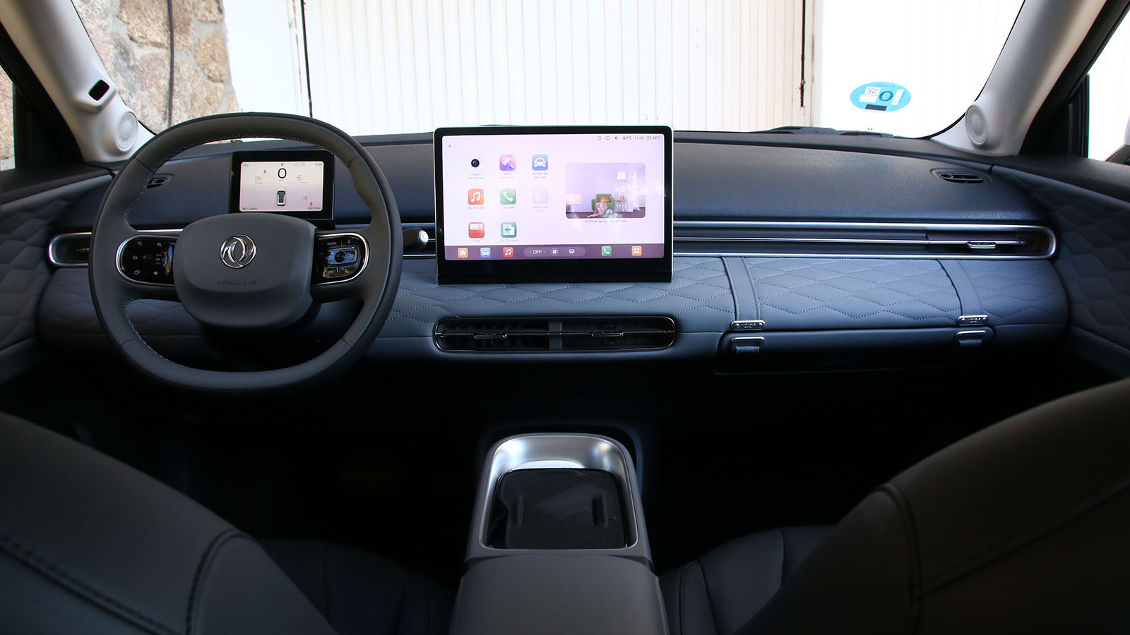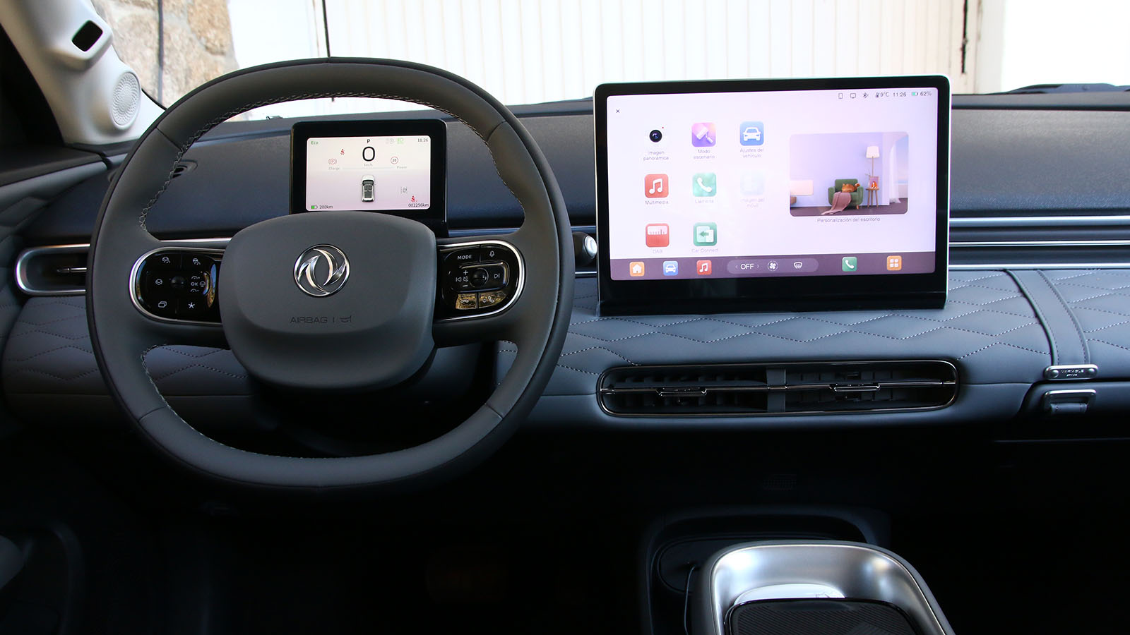 El espacio a bordo sorprende por calidad y confort, con asientos bien rematados y regulación en altura, salpicadero acabado con patrón en rombo que evoca a DS Automobiles y detalles funcionales como la guantera extraíble. El puesto de conducción se apoya en una pantalla central de 12", rápida y bien resuelta, aunque el acceso a funciones clave (regeneración o programas de conducción) obliga a navegar menús. El minimalista cuadro de instrumentos cumple, pero el multimedia echa en falta Apple CarPlay/Android Auto nativo.