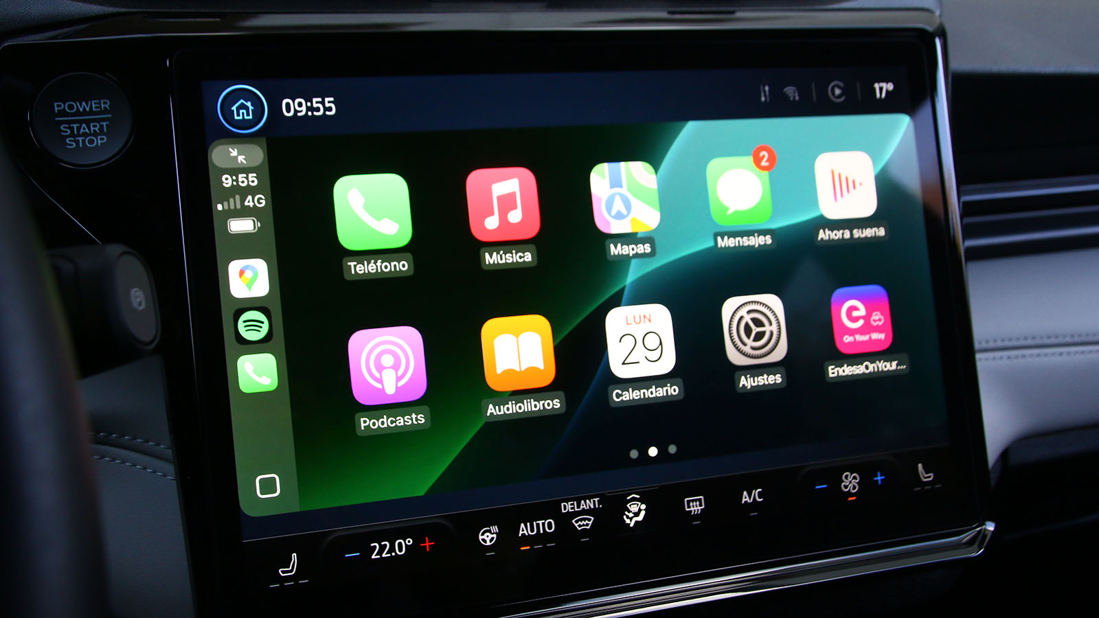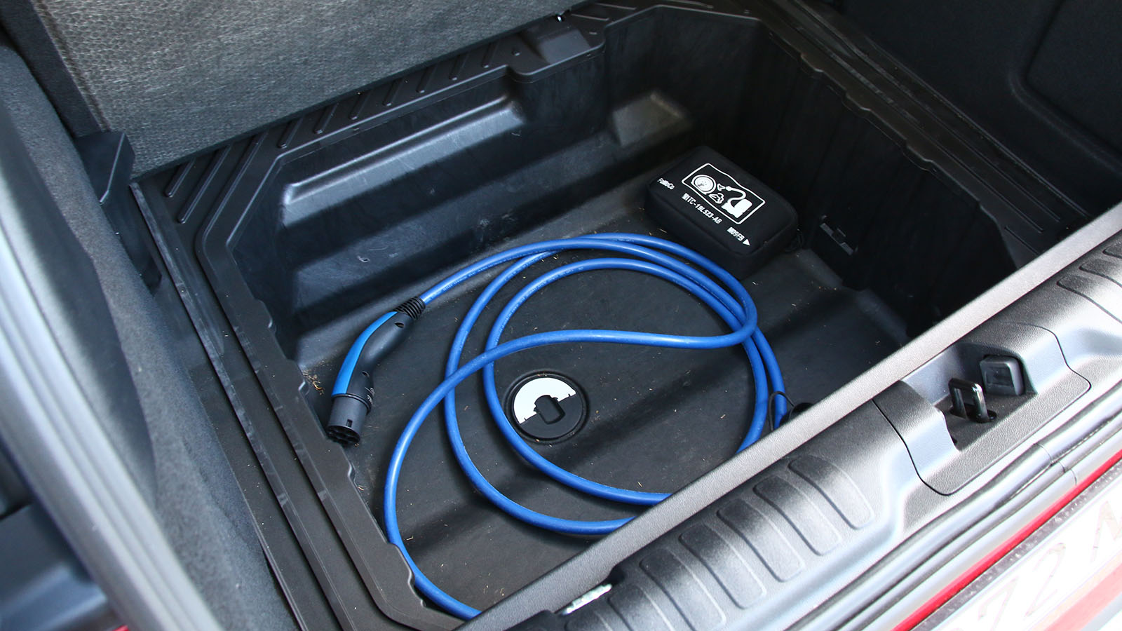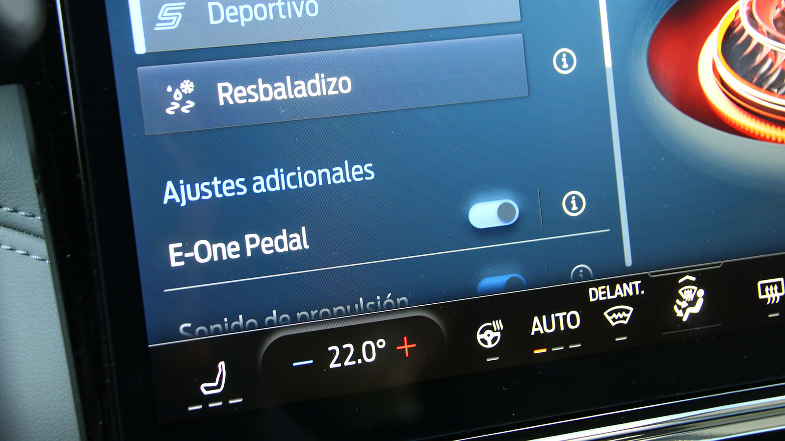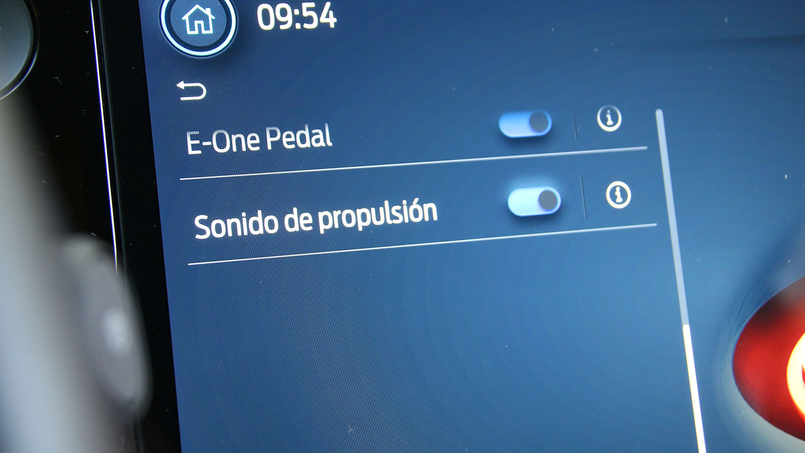 Por dentro no cambia nada en el puesto de conducción salvo los menús específicos del sistema multimedia y que las plazas traseras son un poco menos habitables porque el piso está colocado algo más arriba por culpa de las baterías, las mismas que se ven en su parte baja, por lo que tendrás que ser cuidados a la hora de circular por zonas no asfaltadas. En cuanto al maletero, no pierde capacidad, al revés, la suma, gracias a los 43 litros de frunk delantero, ideal para guardar los cables.