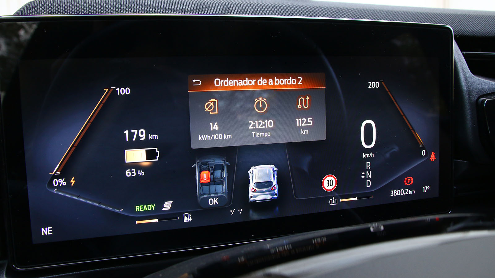 Habrá que ver cómo se comporta en conducción real, ya que con nuestra unidad era relativamente sencillo moverte en los 14kWh/100 km e incluso un poco menos aunque a poco que seas ya menos eficiente, estarás en 16 kWh/100 km. Sin embargo, la realidad es que como mucho vas a llegar a los 300 km de autonomía y eso que este coche cuenta de serie con bomba de calor por lo que no deberás preocuparte por conectar el climatizador; pero como ya alertó la OCU en su momento, los datos de autonomía no reflejan la verdad al realizarse en otras condiciones.