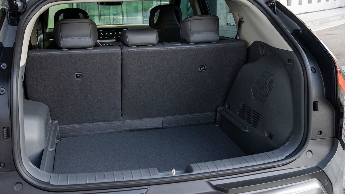 Pero todavía hay más porque si hablamos del maletero, tenemos nada menos que 460 litros, un volumen muy por encima de la media de sus competidores, ofreciendo un hueco regular y amplio, aunque con un umbral de carga algo profundo que puede colocarse en dos alturas y que puede ampliarse hasta los 1.250 litros cuando abatimos los respaldos traseros. Pero además, contamos con un maletero delantero en el capó de 25 litros ideal para guardar los cables de carga ya que el motor es pequeñito.