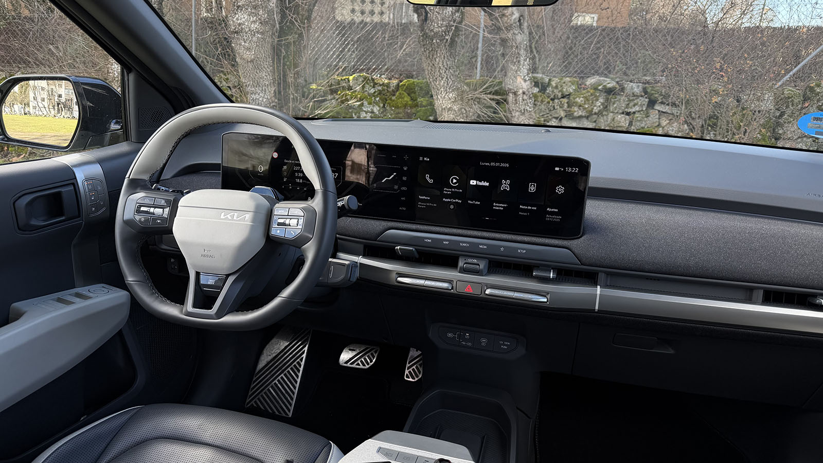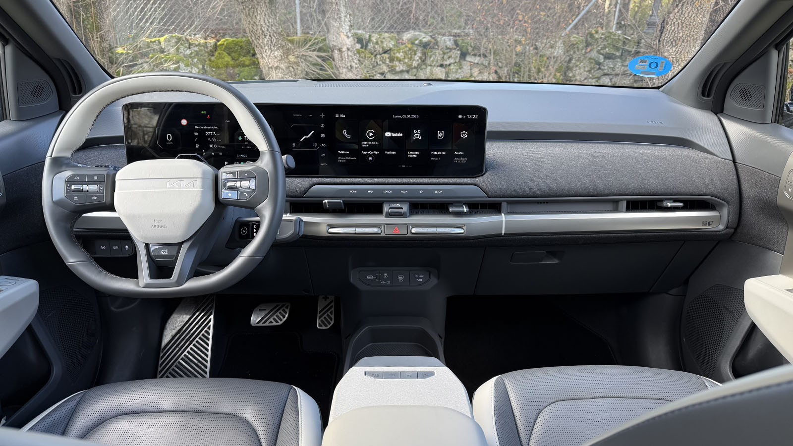 Pero ya que hablo de pantallas, déjame que te diga, como ya hice en el EV9, que el monitor de 5,3” no es del todo de mi agrado ya que su visión no es clara dado el aro del volante y yo hubiera preferido que se mantuviera en el monitor central dado que ya tenemos estos comandos físicos en esta zona central. Otros aspecto que no me gusta, es que no hay una guantera central para ocultar nuestros enseres.