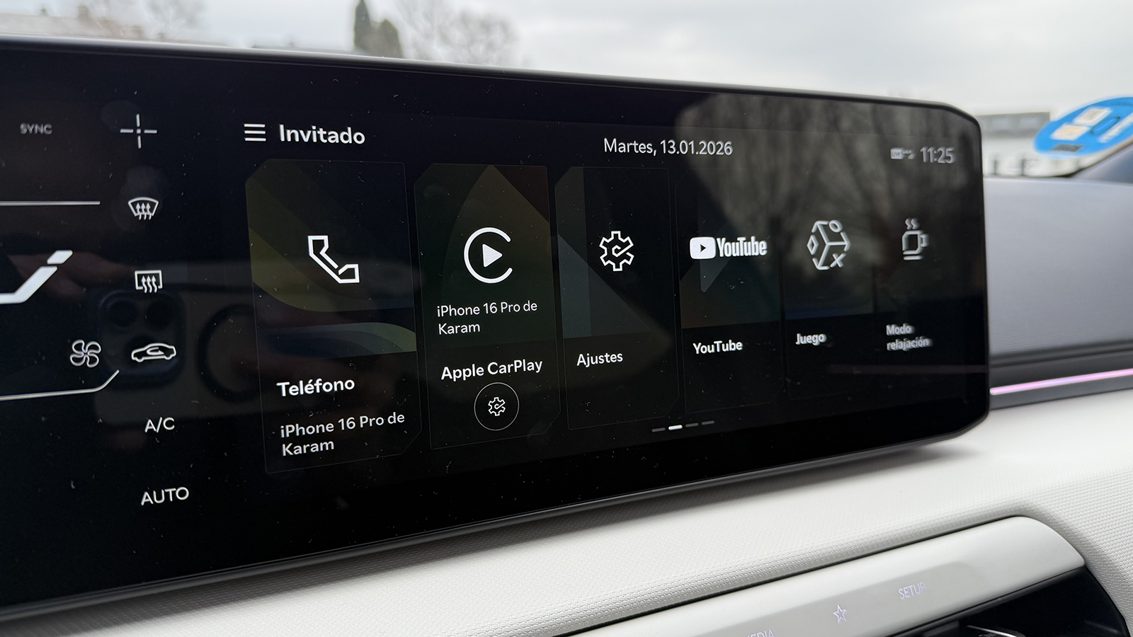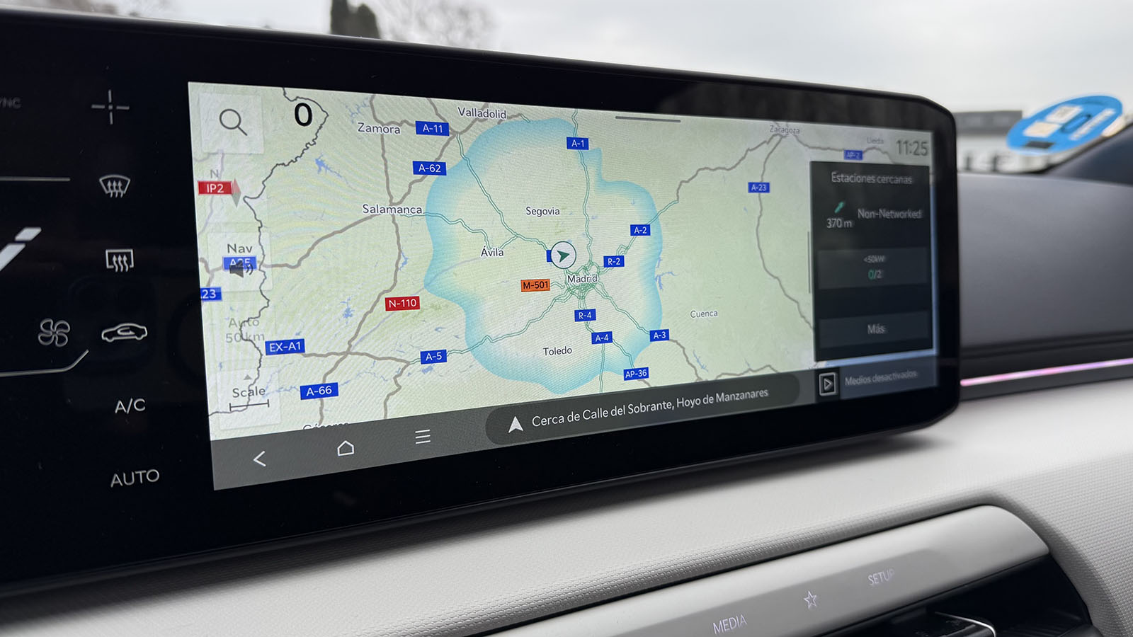 El segundo, el aplomo, estabilidad y precisión con la que se mueve. En un momento donde los SUV dominan parece que se nos ha olvidado de la calidad y sensaciones que nos transmiten los compactos. Gracias a una postura de conducción más baja y a un centro de gravedad rebajado en 40 mm frente al EV3, este EV4 se mueve sobre raíles. Todo acontece de una manera armoniosa, sin correcciones y el perfecto guiado de la dirección consigue transmitir un nivel de seguridad y confianza pasmoso. Todo ello sin mermar la visibilidad, que es notable hacia delante aunque algo justa hacia detrás.