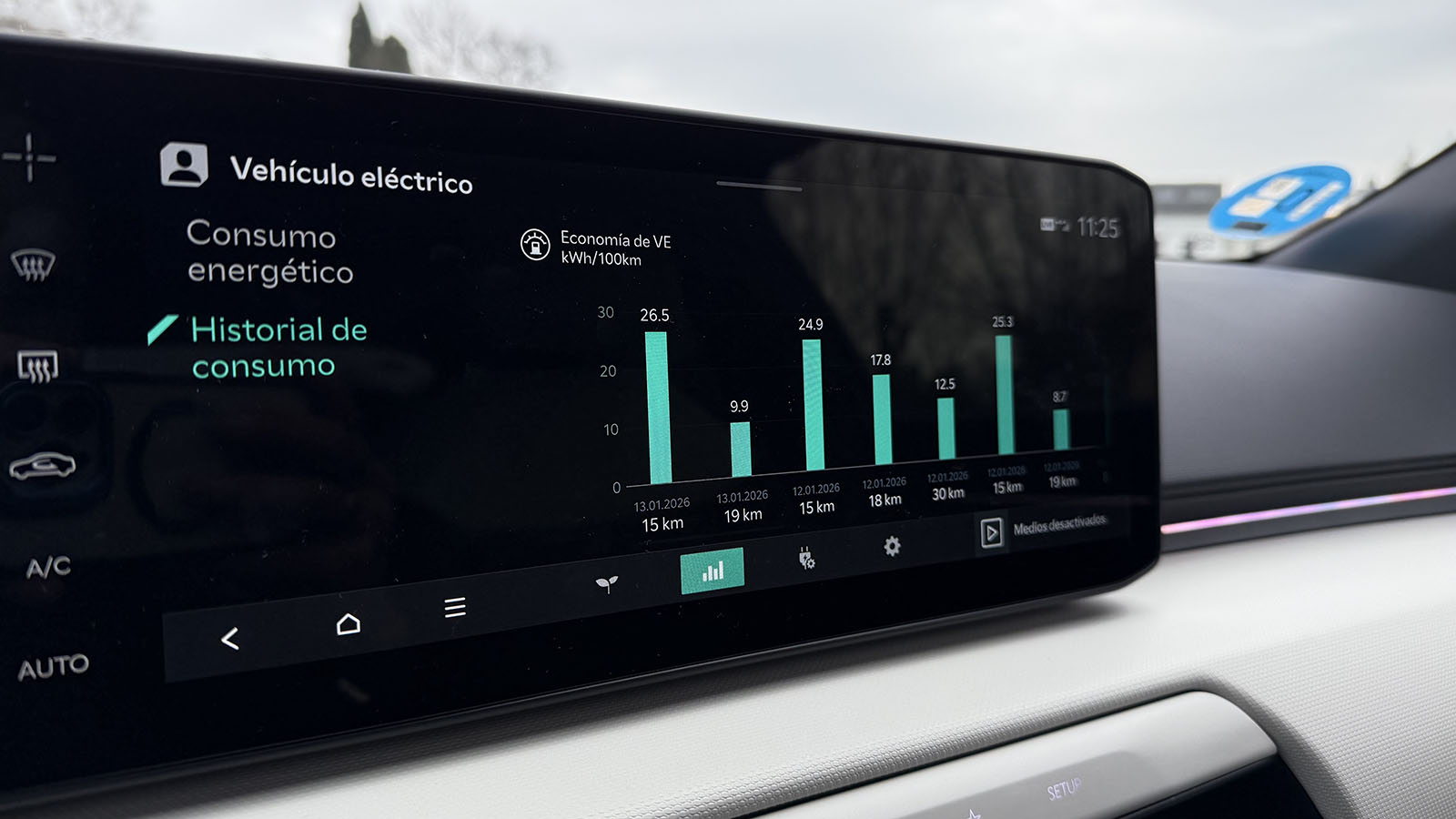 Junto a ellos, este EV4 cuenta con los característicos niveles de retención a seleccionar mediante levas situadas tras el volante (solución que deberían copiar todos los fabricantes), con hasta tres que van aumentando la sensibilidad y culminándose con el i-Pedal que nos permite realizar una conducción de un solo pedal. En este sentido, otro aspecto que nos ha dejado muy buen sabor de boca ha sido, precisamente, el tacto del freno, muy natural para tratarse de un modelo cero emisiones. En lo relativo al consumo de electricidad, este se movió entorno a los 19 kWh/100 km aunque puedes conseguir picos a la baja de 17 kWh/100 km.