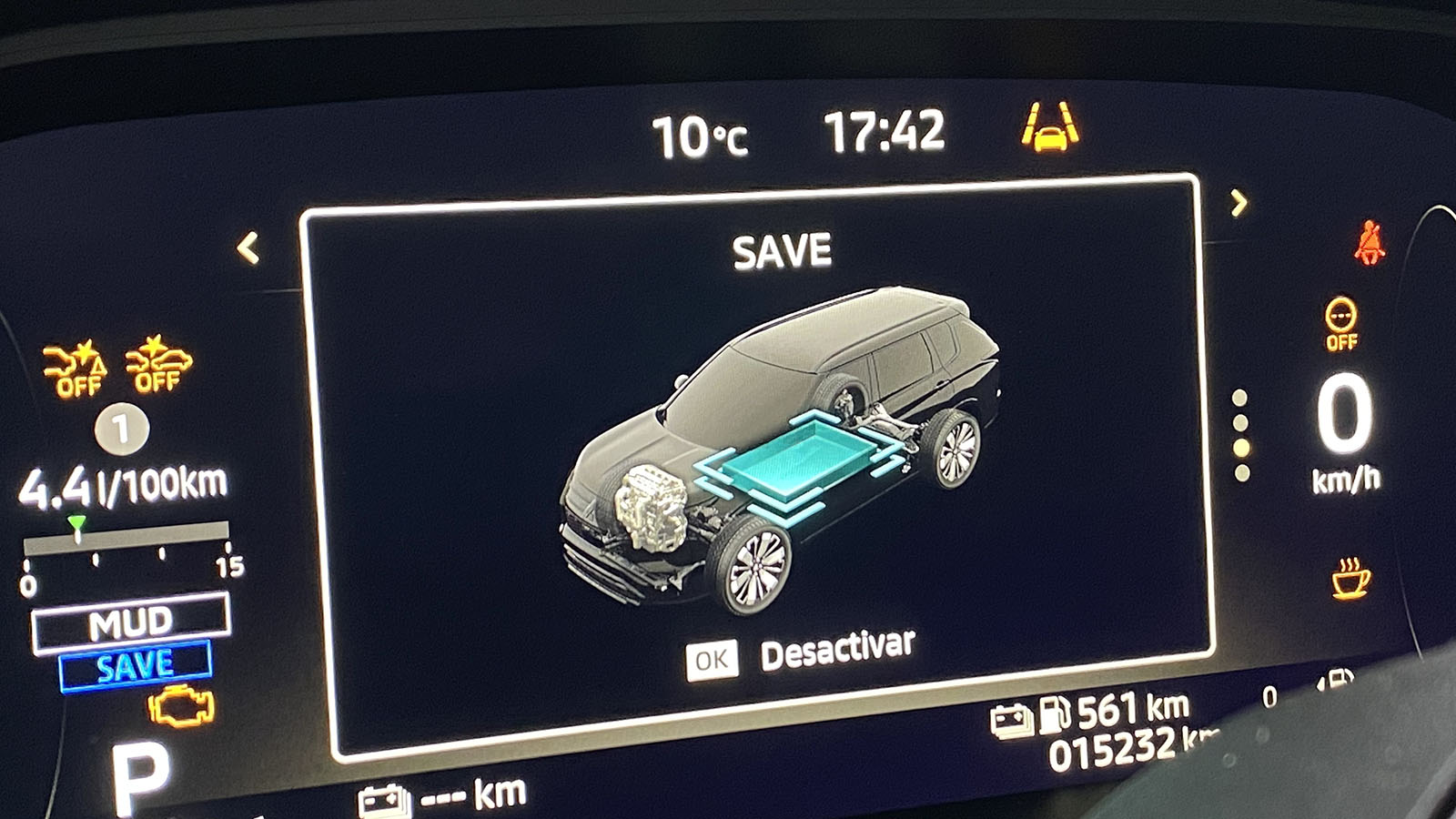 De hecho es en carretera donde este Outlander más brilla, pues el confort de marcha es espectacular, propio de un modelo premium. Del mismo modo, cuenta con varios programas de regeneración de la frenada. Hablando de programas, ofrece varios modos de conducción destinados al propio asfalto, Normal, Eco, Power y Tarmac (para desconectar el control de estabilidad), como para circular por fuera de él: Grava, Nieve, Barro, ajustando la respuesta del motor, la suspensión y el reparto de par. Porque en conducción off road es donde también saca los colores a otros phev, gracias entre otros a una altura libre al suelo de 21 cm y a un sistema que funciona a las mil maravillas.