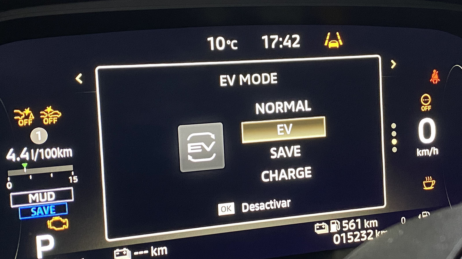 Así me lo ha demostrado superando los 900 km totales de autonomía gracias a su depósito de 53 litros: y a un gasto medio de 6,5 l/100 km cuando la batería se agota por completo, con un gasto eléctrico de unos 23 kWh/100 km. Lo bueno es que puede conectarse en tomas de corriente continua hasta de 50 kW pero con una salvedad: el conector es CHAdeMO y no CCS, algo que limita la búsqueda de puntos. En corriente alterna solo admite 3,6 kW aunque al menos incluye la función V2L.