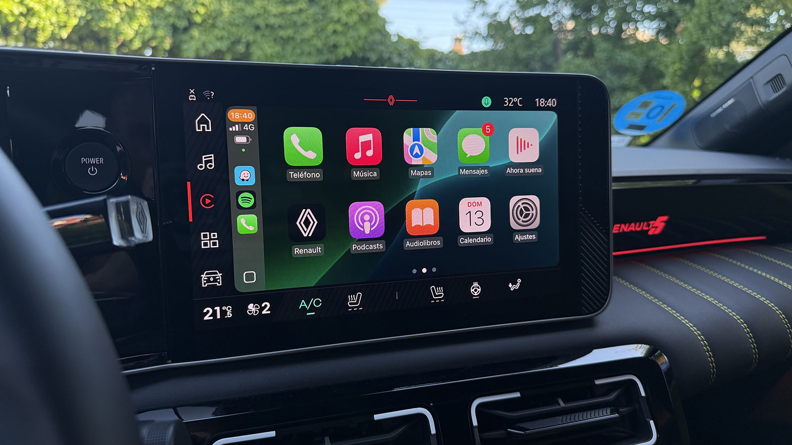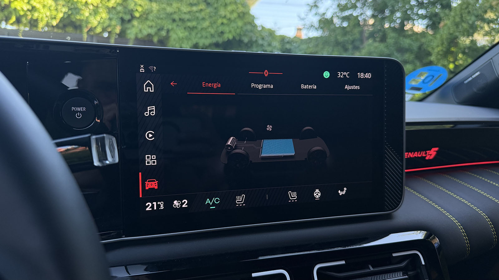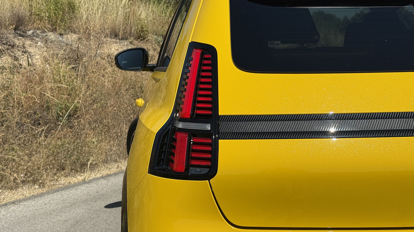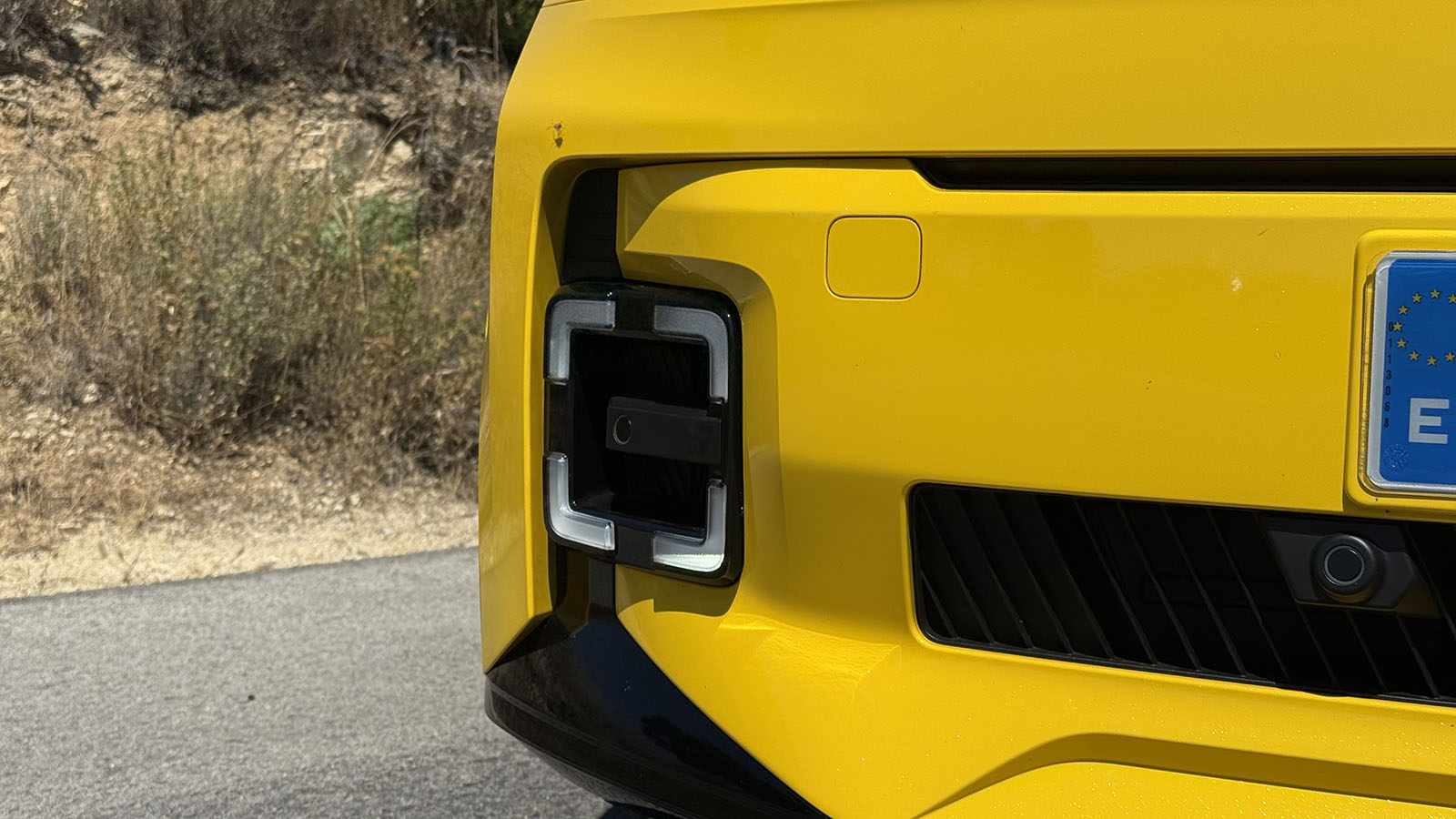 Un guiño al pasado que se refleja en detalles como las llantas de aleación, con este diseño en forma de margarita, los pilotos cuadrados, pero no los principales sino los diurnos que además aportan volumen, la forma del pilar C y los pilotos posteriores verticales o sin duda esta esta moldura que simula la icónica rejilla de los R5 clásicos y que aquí es, además, funcional, ya que se retroilumina tanto al acercarte al coche como, sobre todo, al cargarlo, pues cada segmento de se ilumina informando del porcentaje de carga que tiene.