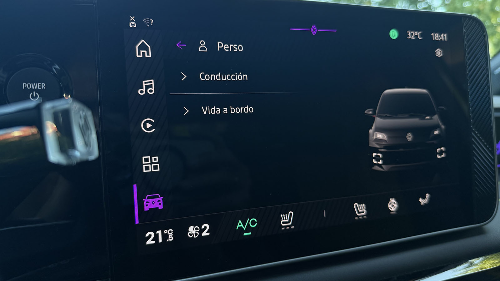 Pero no todo iban a ser bondades y uno de los puntos más flacos de este R5 está en las plazas traseras. Somos conscientes de que es un coche urbano, con unas dimensiones contenidas, pero eso no justifica el hecho de que un adulto de mi estatura no solo esté golpeando las rodillas con el respaldo, sino que además no pueda colocar los pies de una manera más o menos confortable.