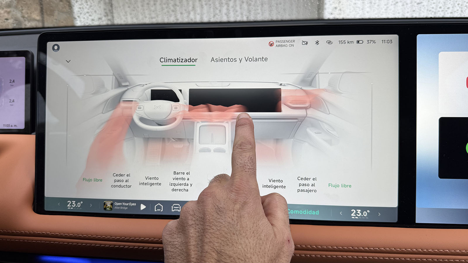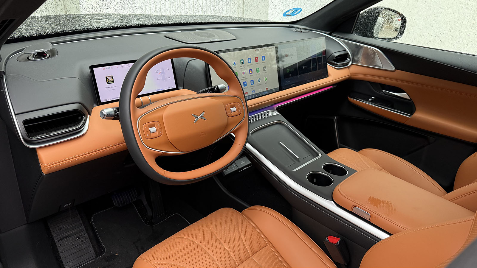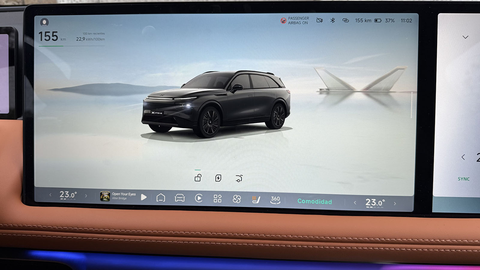 En el interior, el XPENG G9 redefine la experiencia de lujo que ya vimos en su momento estrenando en este caso cuatro colores interiores entre los que se incluye el nuevo Coffee Brown de nuestra unidad. Todo ello envuelto en una elevada sensación de serenidad, con el 95% de las superficies envueltas en materiales suaves al tacto. Los asientos, además, incorporan cuero Nappa y un diseño ergonómico de 12 capas, al tiempo que el sistema de masaje Shiatsu de 10 puntos ha sido desarrollado conjuntamente con especialistas en ortopedia, está disponible en 4 de sus 5 plazas.