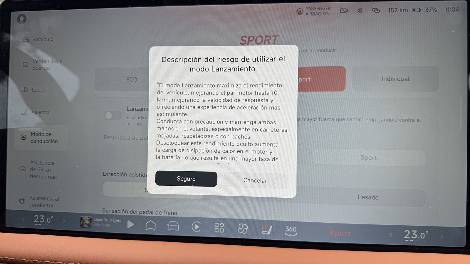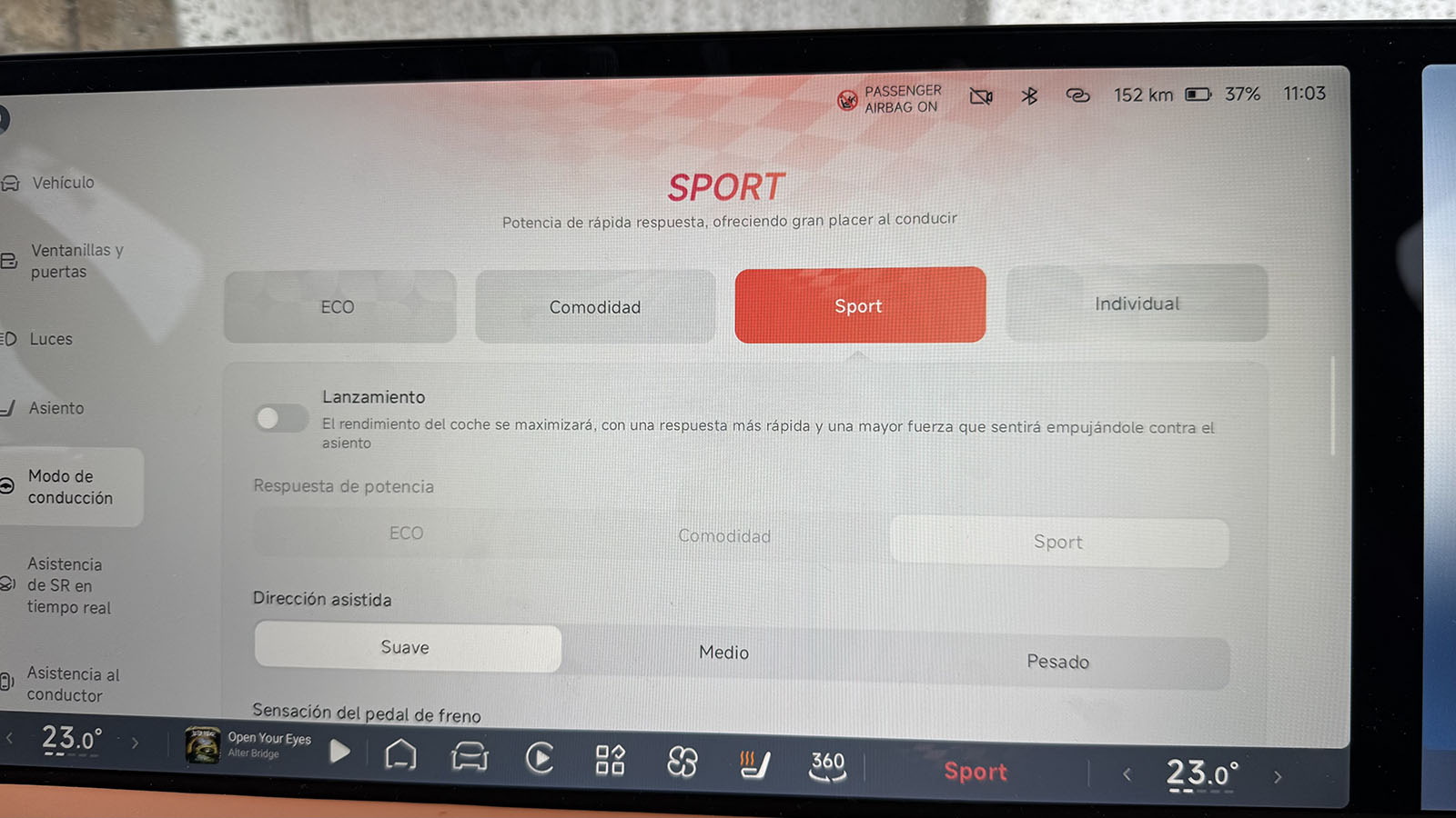 Entre los modos de conducción encontramos además de los ya clásicos Eco, Estándar, Deporte e Individual, un modo Slipi-Start, pensado para arrancar sobre superficies de baja adherencia. Aunque calza neumáticos pensados para el asfalto, si combinamos este modo con la tracción total y los 50 mm extra de altura libre que puede ganar la suspensión, el G9 se atreve con caminos algo irregulares, siempre que no sean demasiado exigentes. En cualquier caso, el cambio de carácter entre modos es notable y perceptible desde los primeros metros.