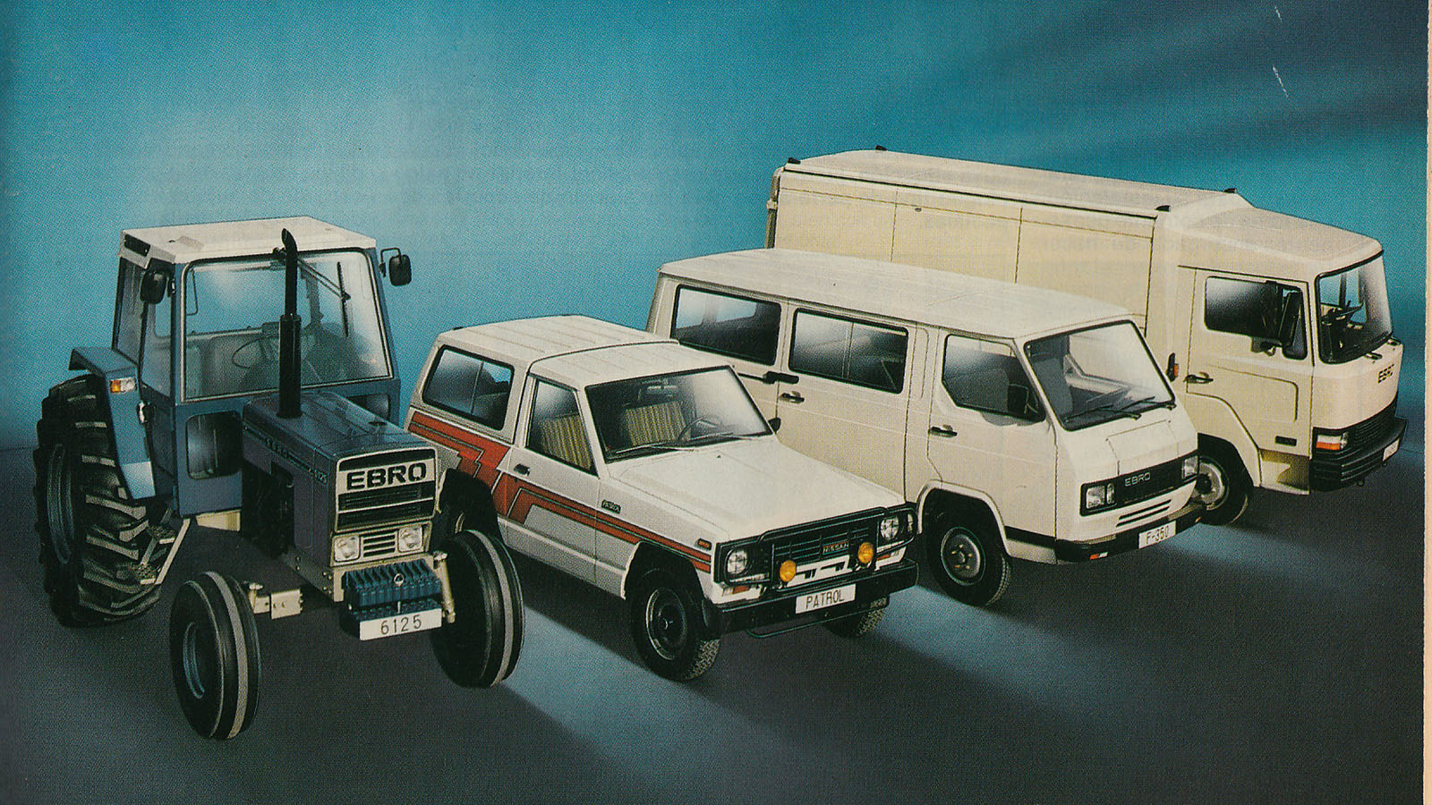 Del mismo modo, EBRO fue pionera en la movilidad 4x4, ofreciendo versiones de sus camiones con tracción total e incluso desarrollando vehículos de alta movilidad, como el EBRO Trepador, presentado en el Salón de Barcelona de 1971. En 1979, en plena recesión tras la crisis del petróleo iniciada años antes, Nissan Motor Company compra el 36% del capital de Motor Ibérica, S.A. en manos de Massey-Ferguson. En 1981, Nissan ya controlaba el 55% de la compañía e introdujo la fabricación del todoterreno Nissan Patrol y la furgoneta ligera Nissan Vanette. Ambos modelos se comercializaron en mercados exteriores con la marca EBRO en su frontal. En 1987 la razón social de la compañía pasó a llamarse Nissan Motor Ibérica, S.A. y la marca EBRO desapareció.