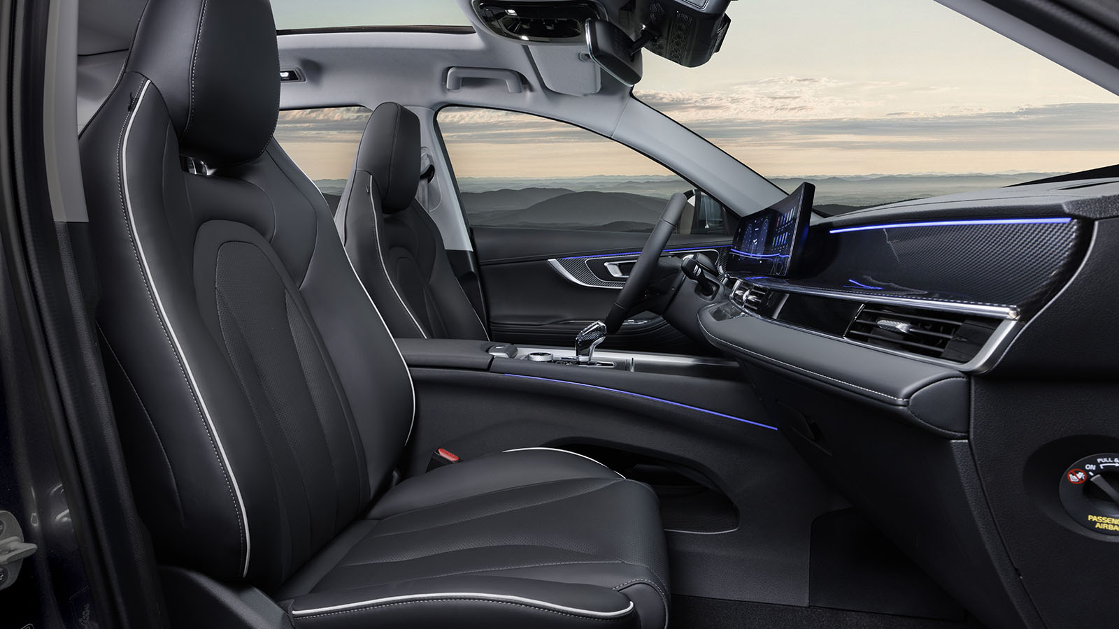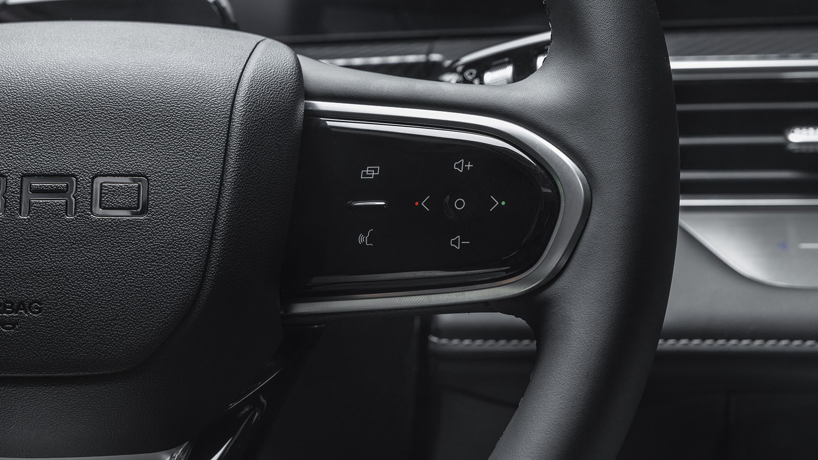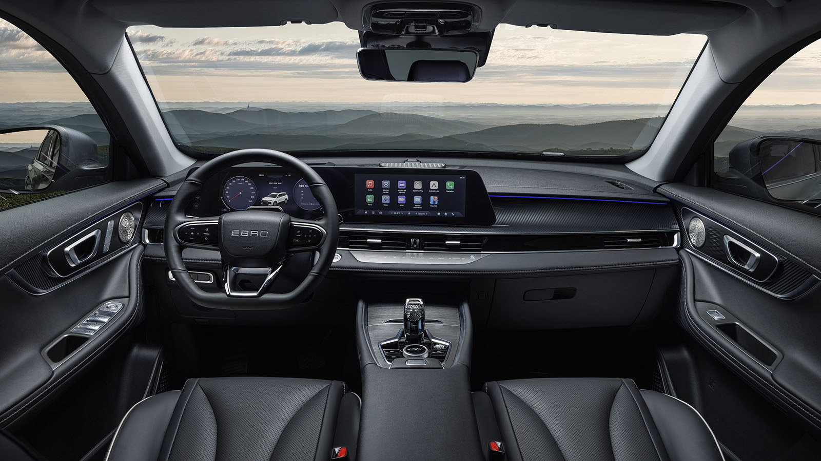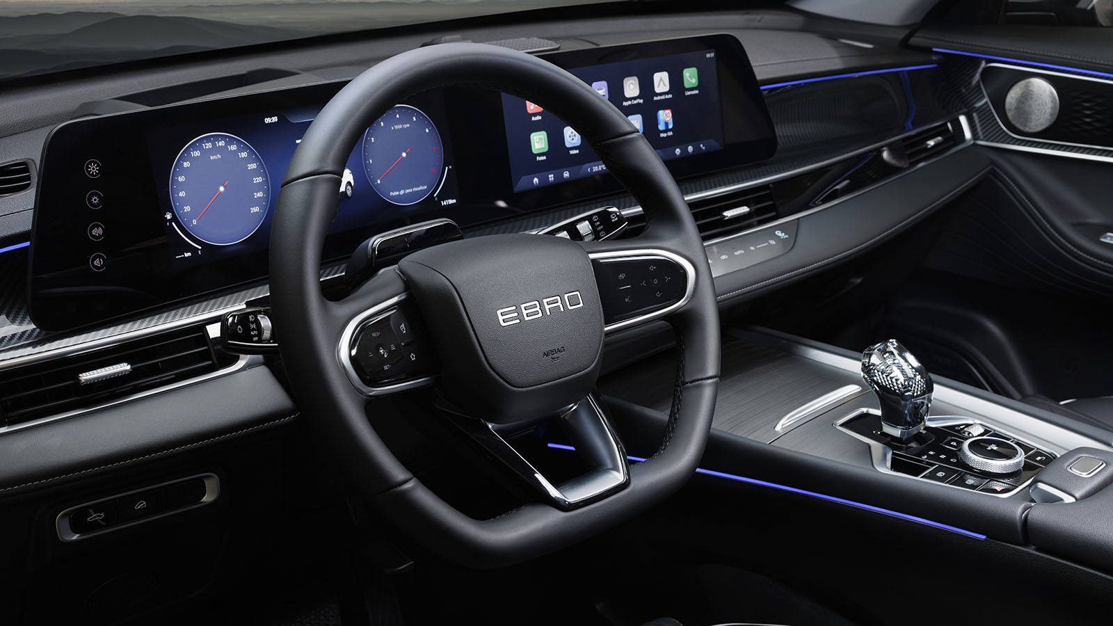 En el interior ya no sorprende la calidad que desprenden este tipo de coches y en el caso del EBRO 700 la sensación de estar bien hecho reina en el puesto de conducción, tanto por el tacto de los materiales como por su ajuste. Además cuenta con detalles vistosos como el pomo del cambio revestido en cristal que aporta más exclusividad. También destaca por la cantidad de huecos portaobjetos entre lso que sobresale el túnel central, con una zona con tapa bajo la que se halla el cargador inalámbrico, el doble portabotellas, la guantera central o el cofre inferior. Por su parte, el equipo de sonido firmado por Sony sí parece estar mejor calibrado que en el Omoda, al tiempo que propone una estética de los altavoces similar a la de Burmester.