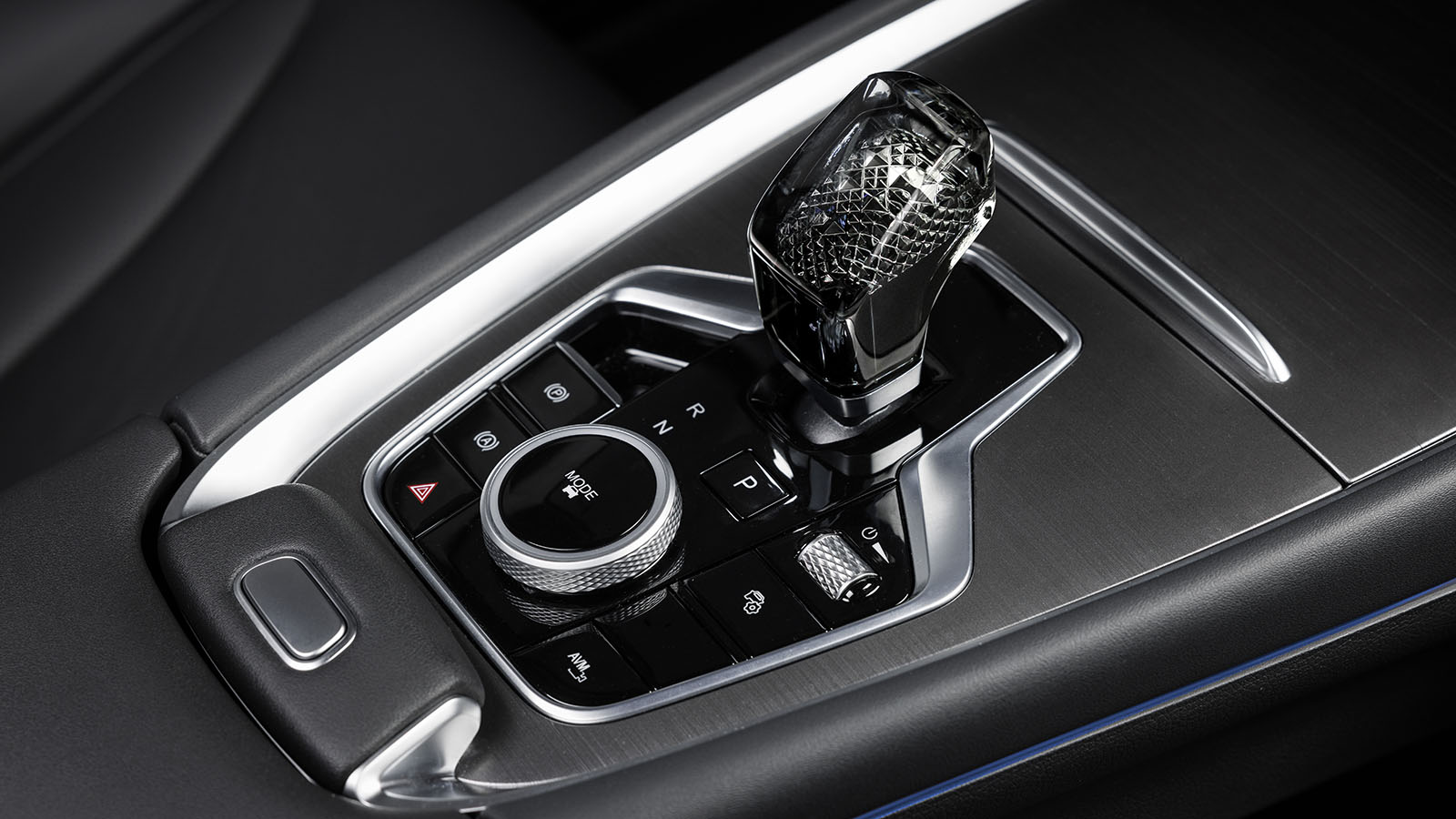 Detalles exclusivos como el pomo de cristal del cambio. Ebro