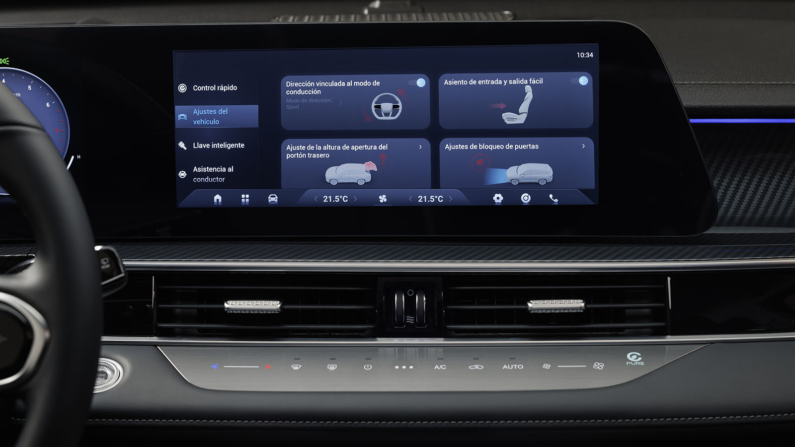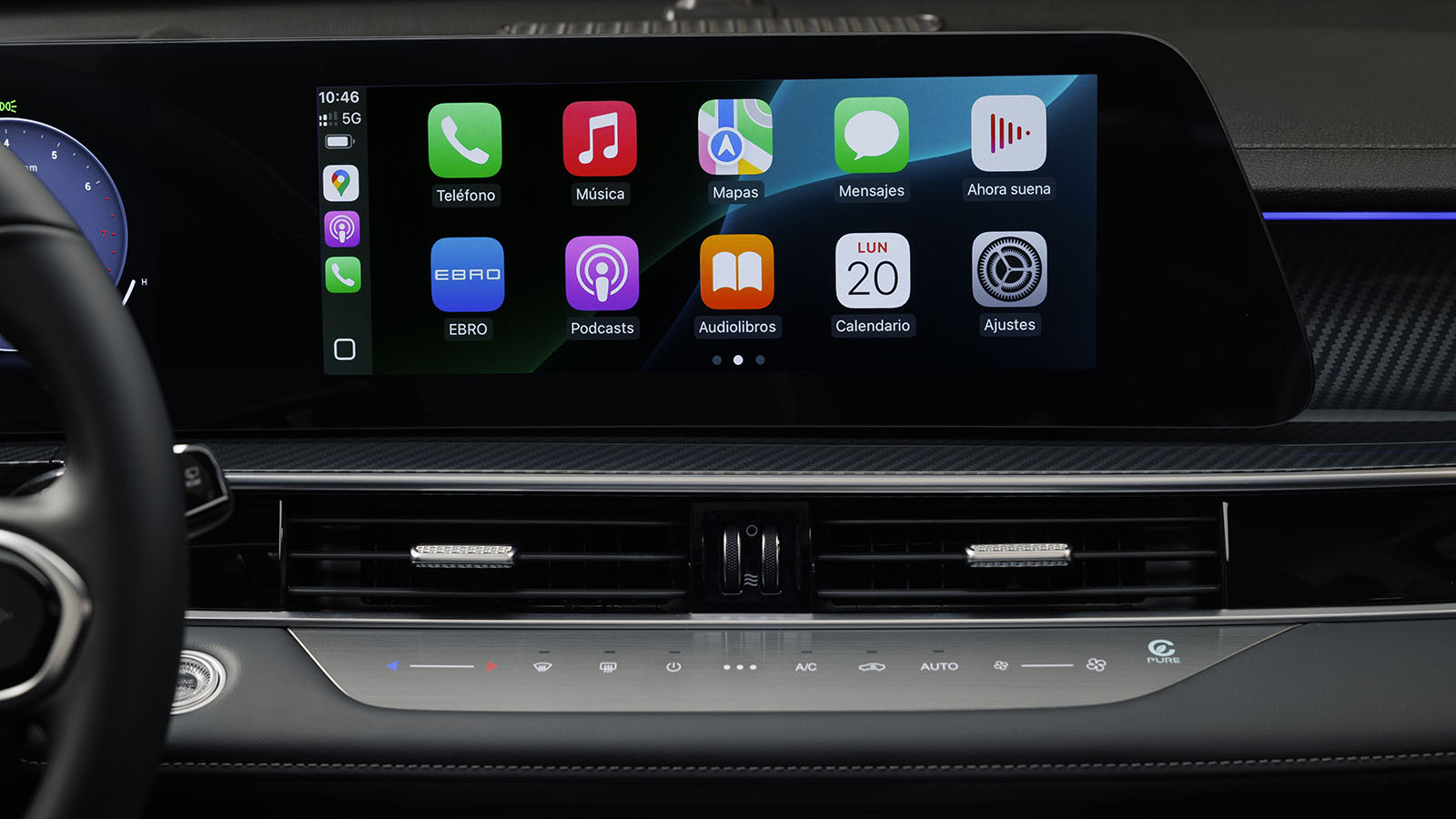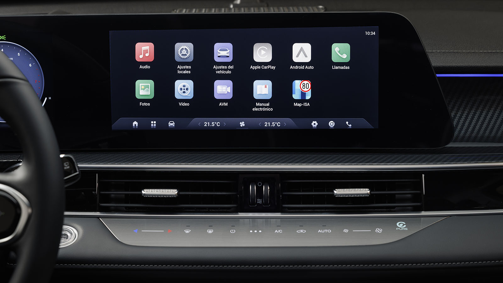 Por último y como detalle llamativo, hay que destacar que contamos con comandos para la climatización ajenos al monitor central, aunque desde Ebro han querido que sean igualmente táctiles, estando incrustados en la propia moldura, una solución que es vistosa sí y que nos recuerda a la del Nissan Ariya (prueba) pero que en términos de practicidad para nosotros sigue siendo mejor tener botones físicos.