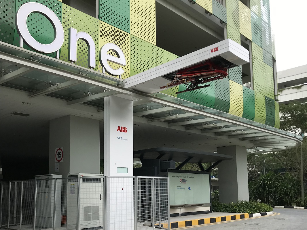 El sistema de carga rápida HVC 300P de ABB entrega una potencia de 300 kW CC y recargará una batería en tres a seis minutos. Se basa en OppCharge, una interfaz abierta para la carga del bus eléctrico de CC, que ahora se está utilizando en Singapur y en toda Asia Pacífico. El uso de un pantógrafo montado en la infraestructura de carga para la carga del punto final, configurado en una parada de autobús o depósito, permite que los autobuses se carguen al final de la línea, sin afectar el funcionamiento normal de la ruta.